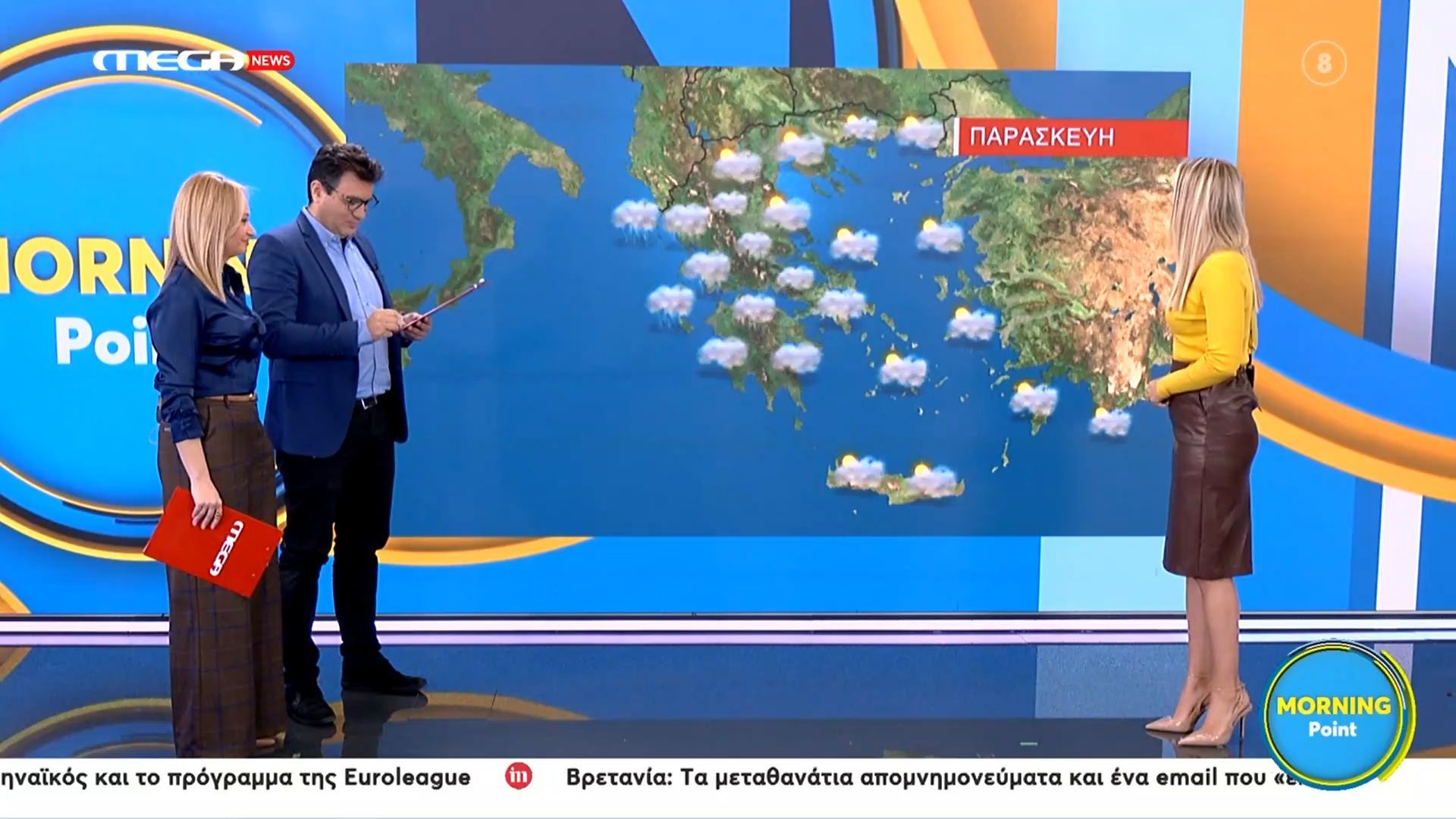 Στην εκπομπή “Morning Point”, η μετεωρολόγος Ελίνα Καρέτσου παρουσιάζει την πρόγνωση του καιρού για την ημέρα. Φέρνει στο προσκήνιο τις σημαντικές καιρικές συνθήκες που αναμένονται, με έμφαση στις μεταβολές της θερμοκρασίας και τις πιθανές καταιγίδες.
