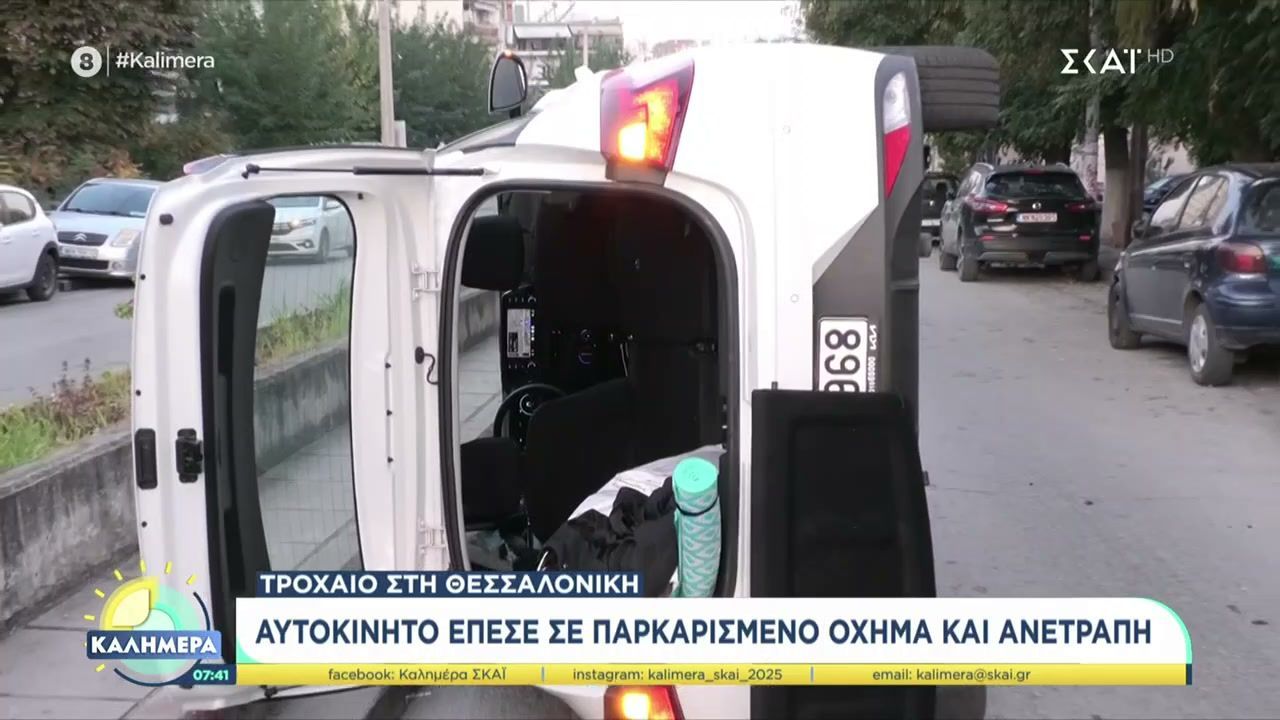 Τροχαίο ατύχημα σημειώθηκε στη Θεσσαλονίκη, όταν ένα αυτοκίνητο συγκρούστηκε με παρκαρισμένο όχημα και ανετράπη. Οι αρχές έσπευσαν στο σημείο για να ελέγξουν την κατάσταση των επιβατών και να ρυθμίσουν την κυκλοφορία, ενώ η περιοχή αποκλείστηκε προσωρινά για την ασφάλεια των οδηγών.