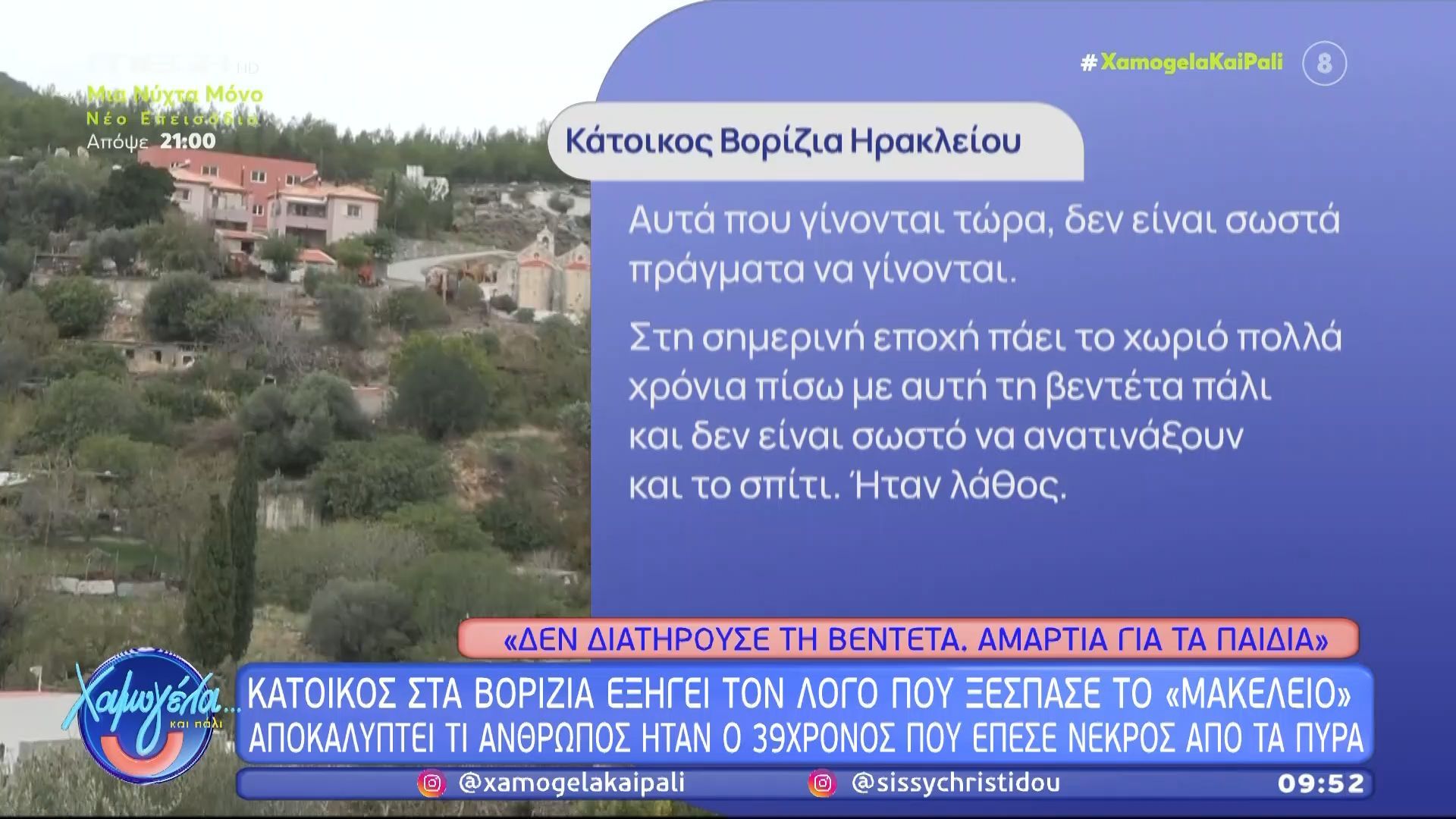 Κάτοικος της περιοχής Βορίζια Ηρακλείου μοιράζεται τις σκέψεις του σχετικά με το πρόσφατο περιστατικό βίας που συγκλόνισε την τοπική κοινωνία. Σύμφωνα με τον ίδιο, ο 39χρονος θύμα δεν διατηρούσε βεντέτα και η κατάσταση που οδήγησε στο τραγικό συμβάν είναι αδικαιολόγητη, ειδικά με γνώμονα την οικογένειά του.