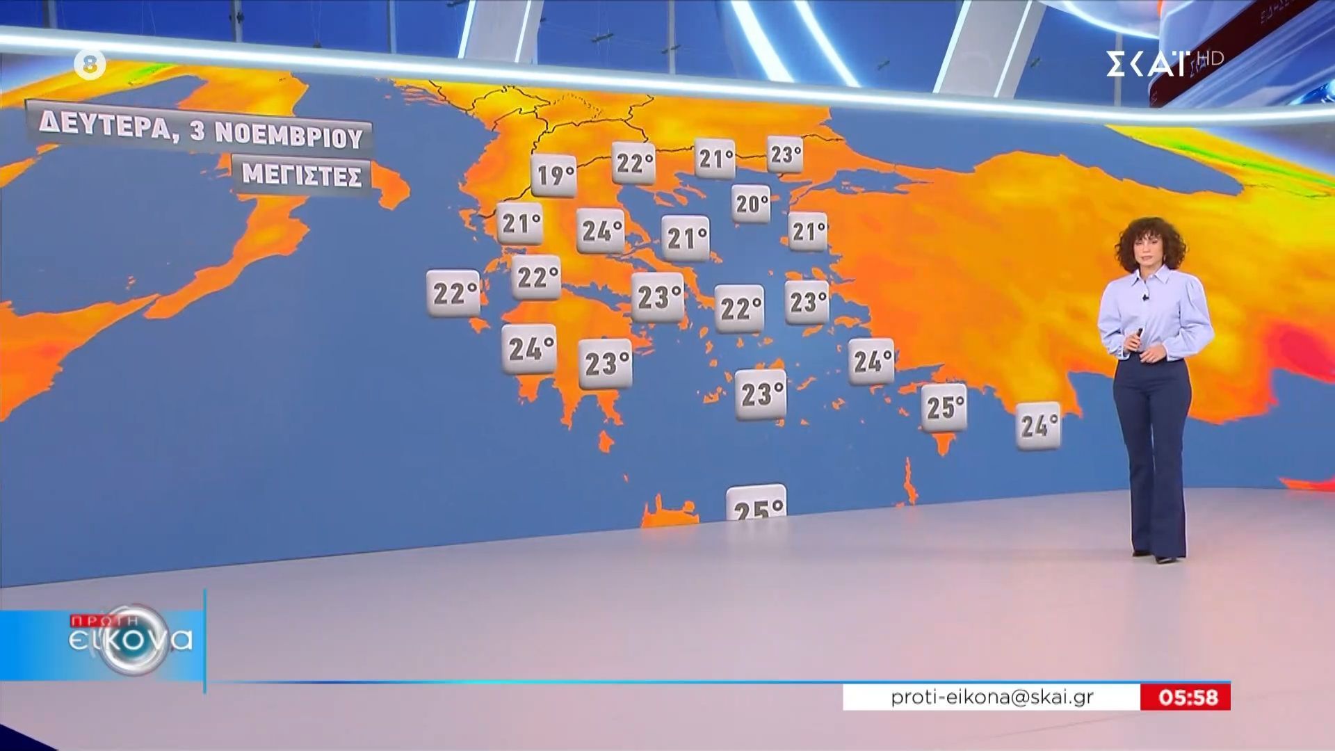 Η πρόγνωση του καιρού για τη Δευτέρα 3 Νοεμβρίου 2025 αναμένεται να είναι κυρίως αίθριος, με ήπιες θερμοκρασίες που θα κυμαίνονται από 15 έως 22 βαθμούς Κελσίου. Οι άνεμοι θα πνέουν ασθενείς, δίνοντας μια ευχάριστη αίσθηση κατά τη διάρκεια της ημέρας.