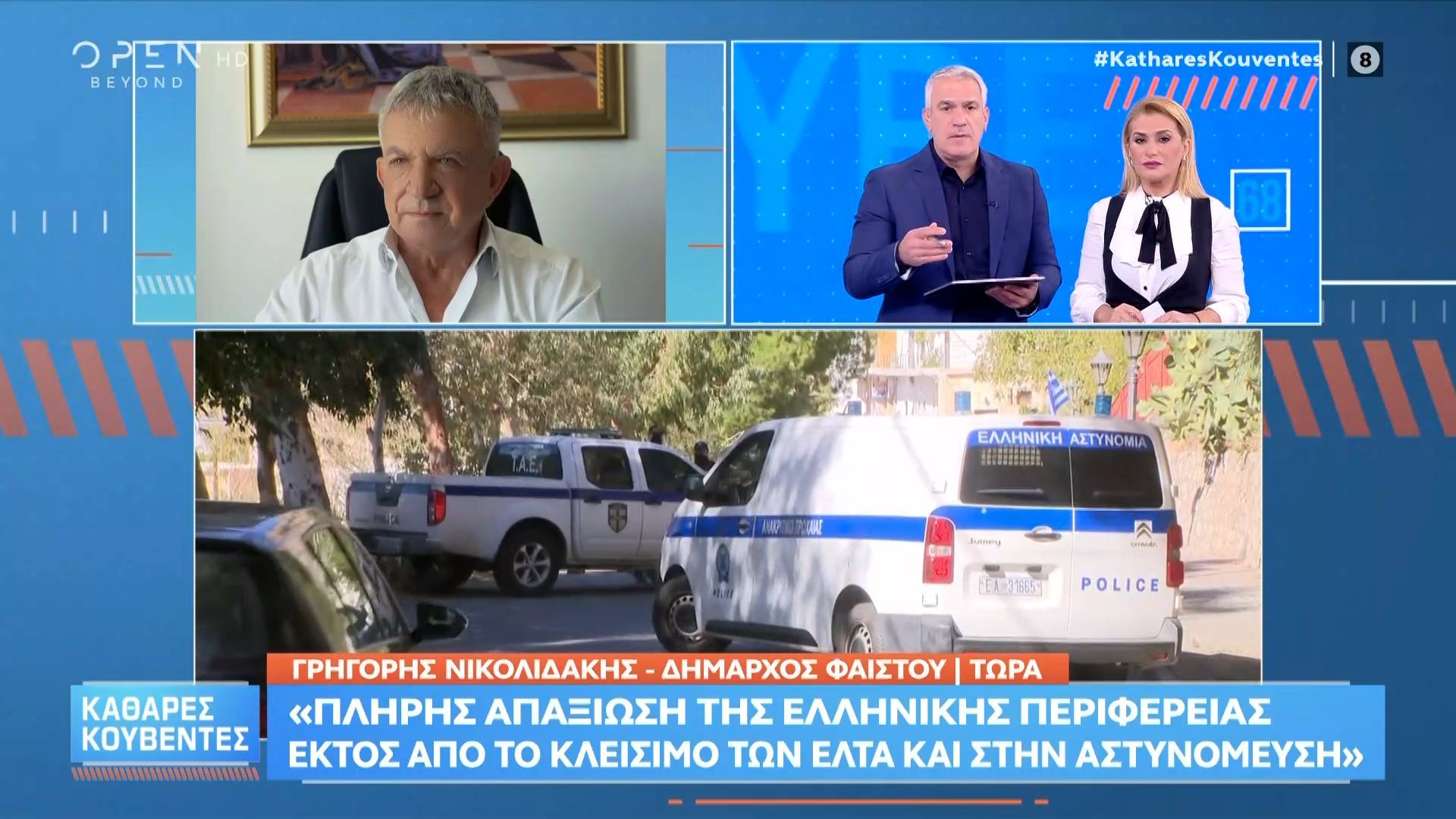 Ο Γ. Νικολιδάκης επισημαίνει την ανησυχητική κατάσταση της ασφάλειας στην ελληνική περιφέρεια, τονίζοντας ότι σε ορισμένες περιπτώσεις δεν υπάρχει καθόλου αστυνομική παρουσία. Αυτή η έλλειψη περιπολικών δημιουργεί ένα αίσθημα ανασφάλειας στους κατοίκους και υποδεικνύει την πλήρη απαξίωση της περιοχής.