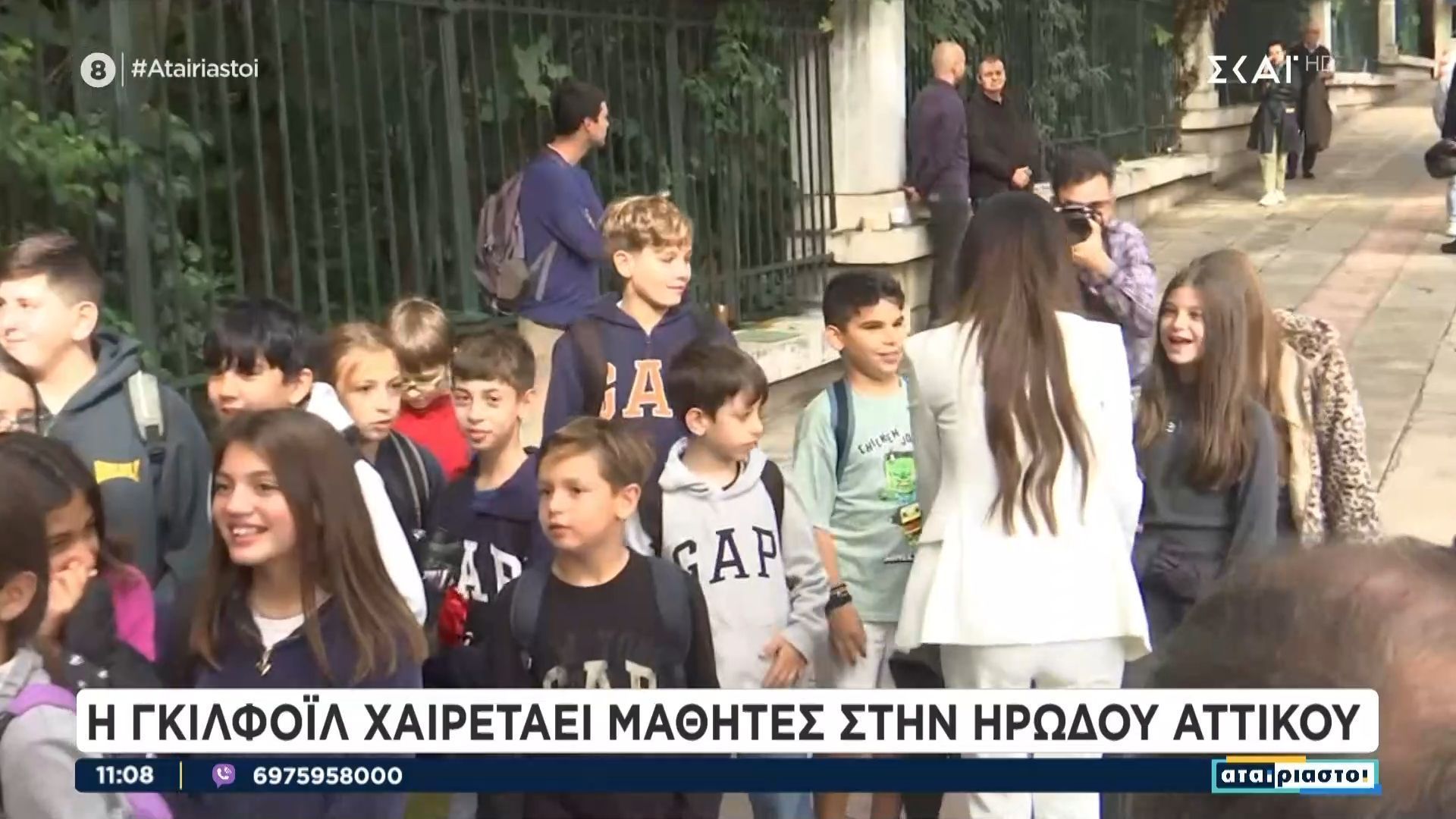 Η Κίμπερλι Γκιλφόιλ χαιρετά μαθητές στην Ηρώδου Αττικού