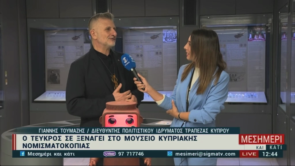 Ο Τεύκρος έχει αναδειχθεί ως ο πρώτος ρομπότ-ξεναγός μουσείου στην Κύπρο, προσφέροντας μια καινοτόμο εμπειρία στους επισκέπτες του νομισματικού μουσείου. Δημιουργημένος από το Πολιτιστικό ίδρυμα της Τράπεζας Κύπρου, ο ψηφιακός οδηγός αξιοποιεί την τεχνητή νοημοσύνη για να παρέχει πληροφορίες και να απαντά σε ερωτήσεις σχετικά με τα εκθέματα.