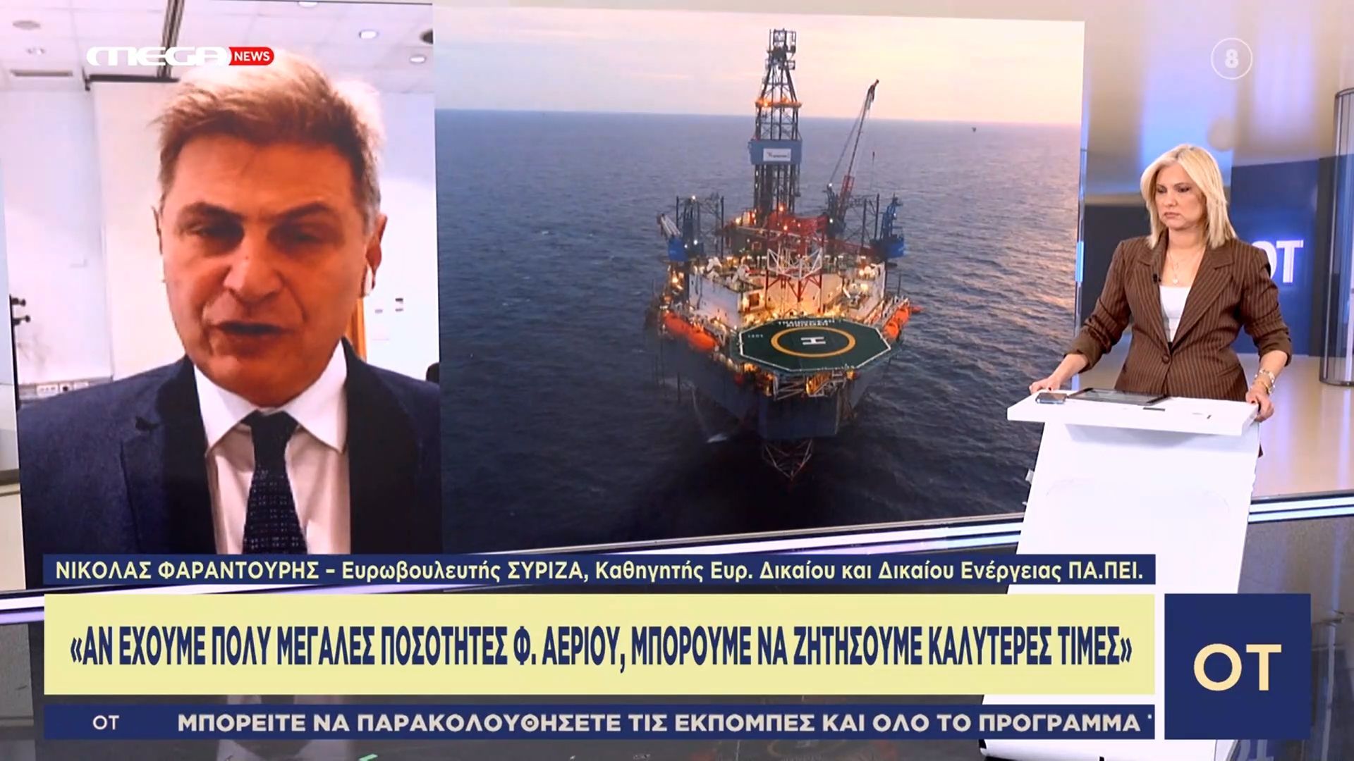 Ο Νικόλας Φαραντούρης, Ευρωβουλευτής του ΣΥΡΙΖΑ, αναφέρθηκε στη συμφωνία που αφορά την έρευνα υδρογονανθράκων στο Ιόνιο, επισημαίνοντας τη σημασία των επενδύσεων στην ελληνική οικονομία. Υπογράμμισε ότι οι επενδύσεις είναι καλοδεχούμενες, αλλά πρέπει να έχουν θετικό αντίκτυπο στην τσέπη του καταναλωτή και να συμβάλλουν στην ευημερία των πολιτών.