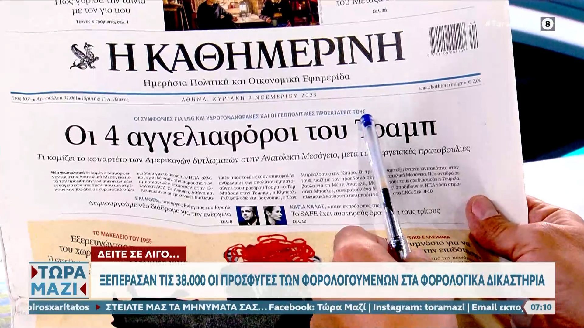 Σήμερα, οι εφημερίδες καλύπτουν σημαντικά θέματα που απασχολούν την κοινή γνώμη. Από τις πολιτικές εξελίξεις έως τις κοινωνικές προκλήσεις, τα πρωτοσέλιδα αποτυπώνουν τις πιο καυτές ειδήσεις που διαμορφώνουν την καθημερινότητά μας.