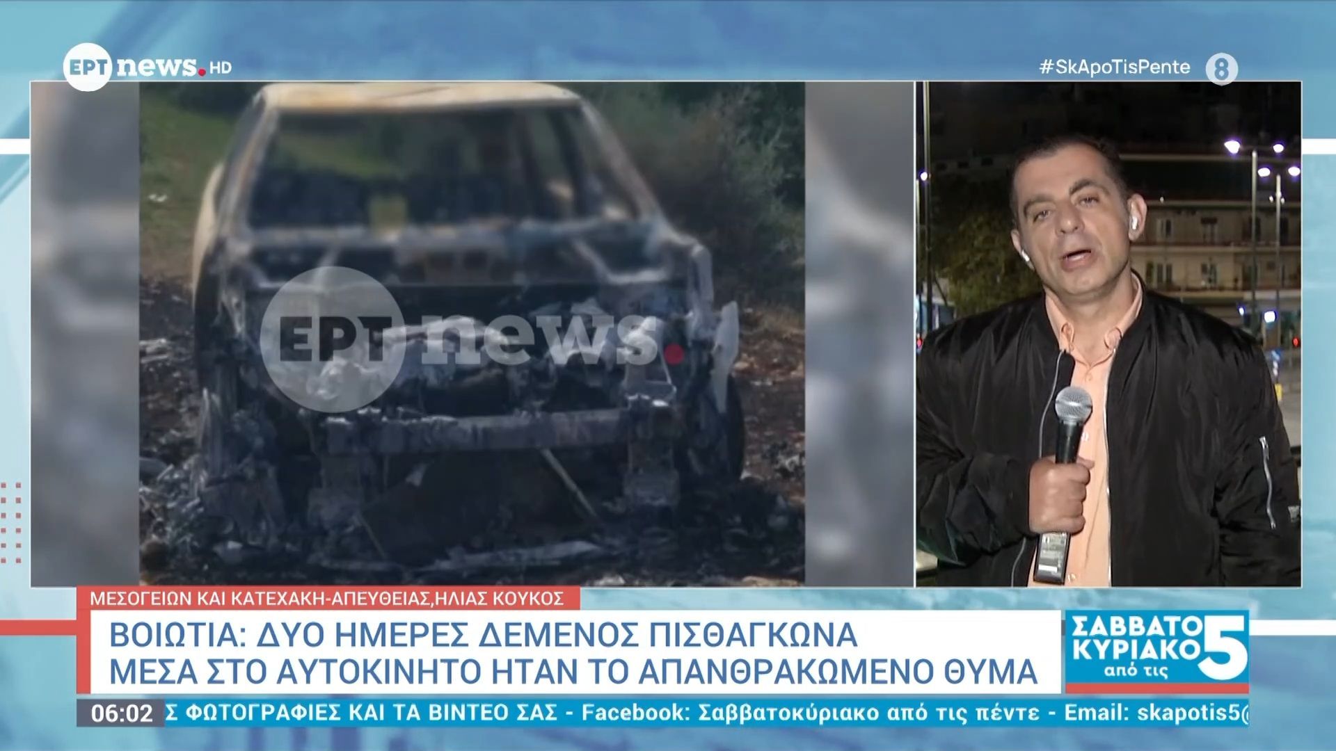 Ένα αποτρόπαιο έγκλημα αποκαλύφθηκε στη Βοιωτία, όπου βρέθηκε το απανθρακωμένο σώμα ενός θύματος που είχε δεθεί πισθάγκωνα. Το θύμα παρέμεινε κλειδωμένο στο αυτοκίνητο για δύο ημέρες προτού εντοπιστεί από τις αρχές, προκαλώντας σοκ στην τοπική κοινωνία.