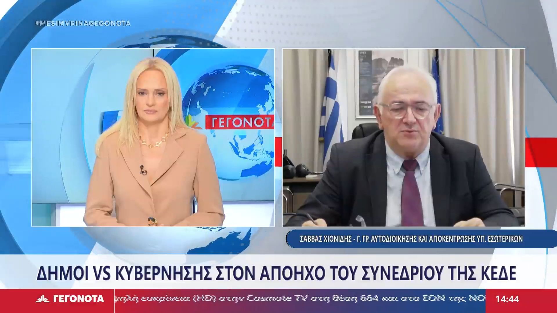 Ο Γ. Γρ. Αυτοδιοίκησης και Αποκέντρωσης του Υπουργείου Εσωτερικών, Σάββας Χιονίδης, αναφέρθηκε στις εξελίξεις που προέκυψαν από το πρόσφατο συνέδριο της ΚΕΔΕ. Σε συνέντευξή του, τόνισε τη σημασία της αυτοδιοίκησης και των τοπικών πρωτοβουλιών για την ανάπτυξη των δήμων.