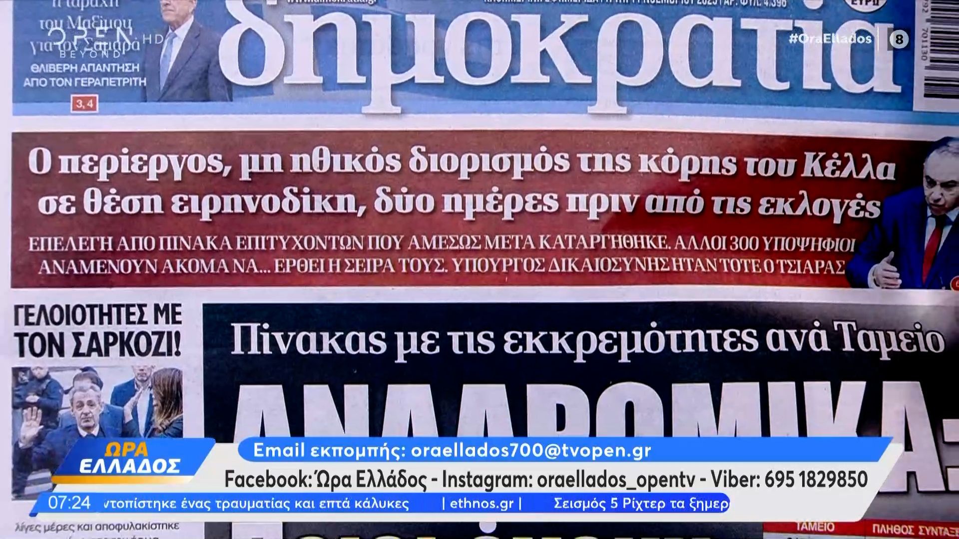 Σήμερα, οι εφημερίδες παρουσιάζουν μια ποικιλία θεμάτων που απασχολούν την κοινή γνώμη. Από πολιτικές εξελίξεις έως οικονομικές προκλήσεις, οι τίτλοι αποκαλύπτουν τις σημαντικές ειδήσεις της ημέρας, προσφέροντας μια συνολική εικόνα για την κατάσταση στη χώρα.