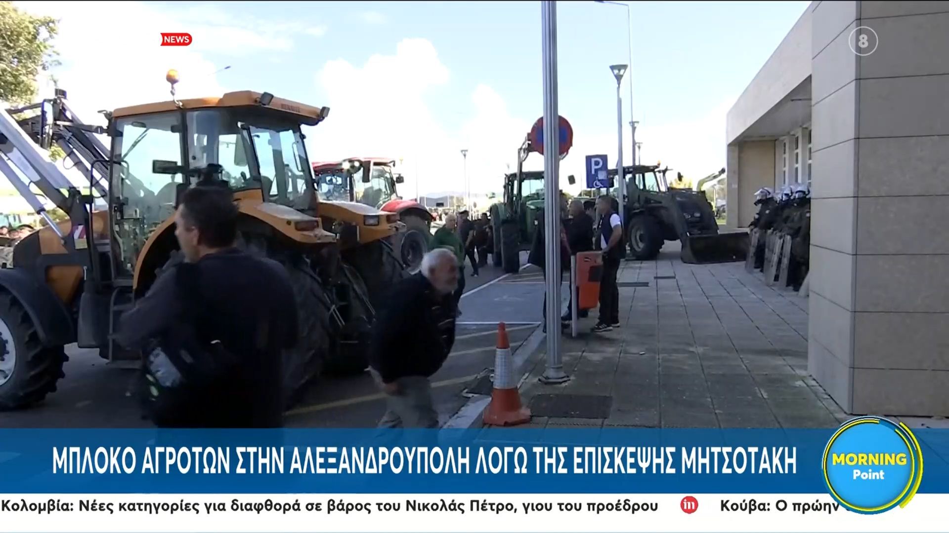 Αγρότες από την περιοχή της Αλεξανδρούπολης πραγματοποίησαν μπλόκο ως ένδειξη διαμαρτυρίας κατά την επίσκεψη του Πρωθυπουργού Κυριάκου Μητσοτάκη. Οι συμμετέχοντες ζητούν άμεσες λύσεις στα προβλήματα που τους απασχολούν, όπως οι χαμηλές τιμές παραγωγής και οι αυξήσεις στο κόστος καλλιέργειας.