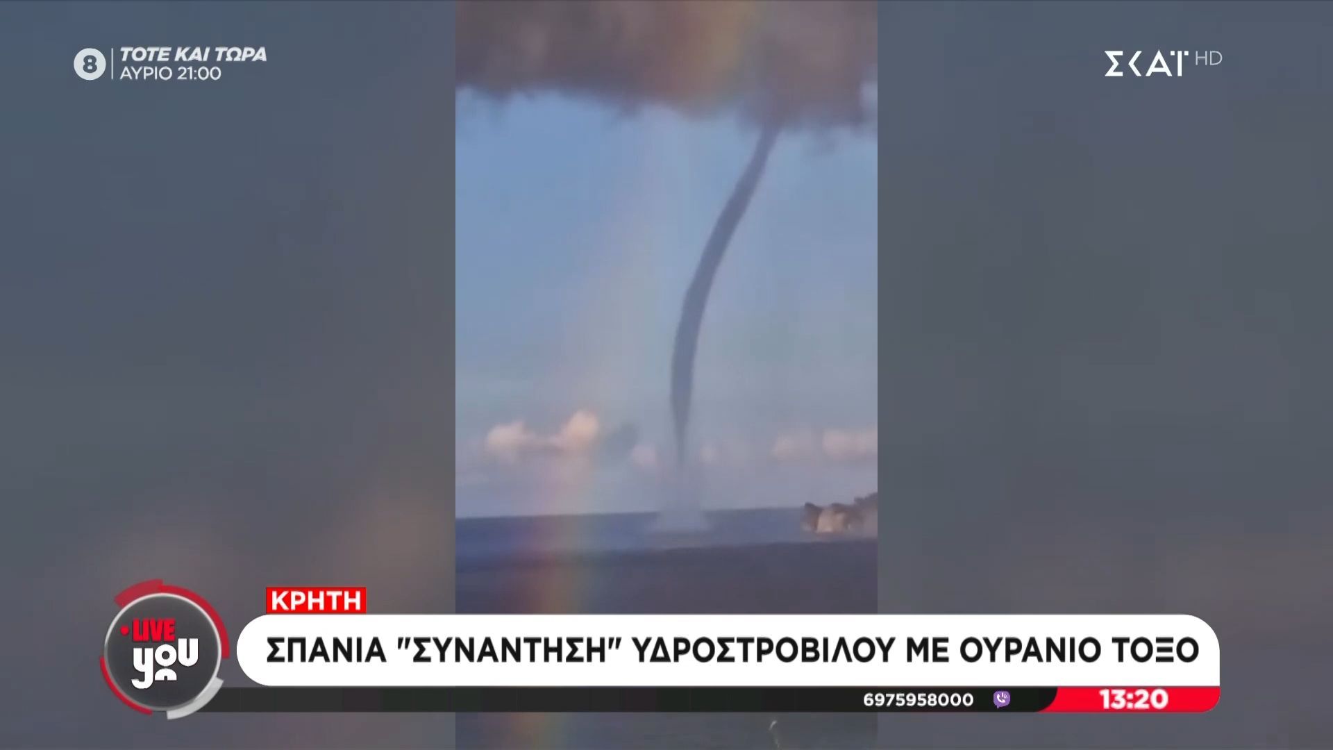 Μια σπάνια και εντυπωσιακή φυσική φαινόμενη καταγράφηκε στο Ρέθυμνο, όπου υδροστρόβιλος συναντήθηκε με ένα πανέμορφο ουράνιο τόξο. Οι εικόνες αποτυπώνουν την ομορφιά και τη δύναμη της φύσης, προσφέροντας μια μοναδική οπτική εμπειρία στους θεατές.
