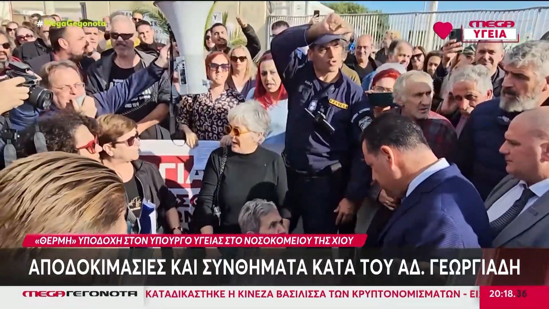 Κατά την επίσκεψη του Άδωνι Γεωργιάδη στο νοσοκομείο της Χίου, οι κάτοικοι και οι εργαζόμενοι εξέφρασαν την αντίθεσή τους με αποδοκιμασίες και συνθήματα. Η κατάσταση αυτή αποτυπώνει την απογοήτευση της τοπικής κοινωνίας για τα ζητήματα της δημόσιας υγείας και της υγειονομικής περίθαλψης.