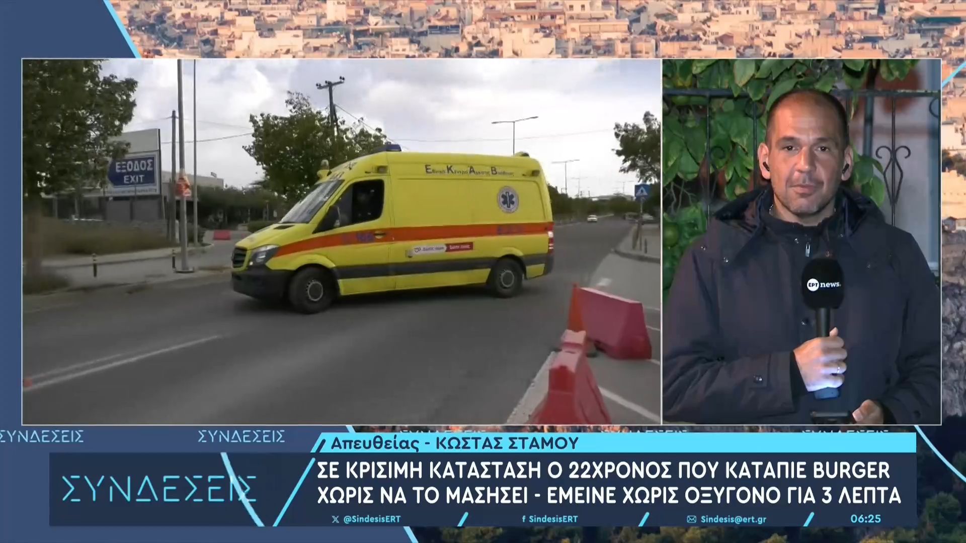 Κρίσιμη είναι η κατάσταση ενός 22χρονου φοιτητή που κατέληξε σε σοβαρό περιστατικό κατάποσης ενώ βρισκόταν σε εστιατόριο στη βορειοανατολική Αττική. Ο νεαρός δεν μάσησε καλά το μπέργκερ που έφαγε, προκαλώντας απόφραξη των αεραγωγών του και έντονη δύσπνοια.