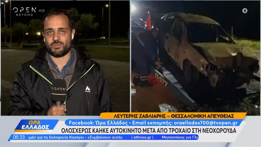 Τροχαίο στη Νεοχωρούδα με σύγκρουση δύο οχημάτων, πυρκαγιά και ολοσχερή καταστροφή του ενός αυτοκινήτου χωρίς σοβαρούς τραυματισμούς