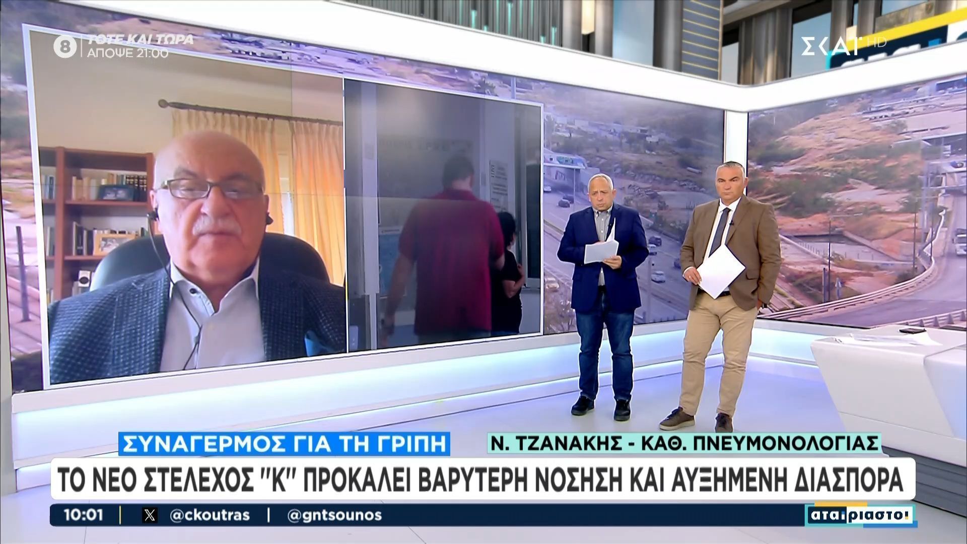 Ο καθηγητής Πνευμονολογίας, Νίκος Τζανάκης, επισημαίνει τις ανησυχίες που προκαλεί το νέο υποστέλεχος γρίπης «Κ», το οποίο φαίνεται να μεταδίδεται πιο εύκολα. Σύμφωνα με τον ίδιο, η φετινή χρονιά αναμένεται δύσκολη, καθώς τα υπάρχοντα εμβόλια προσφέρουν προστασία μόλις στο 40-50% των ενηλίκων.