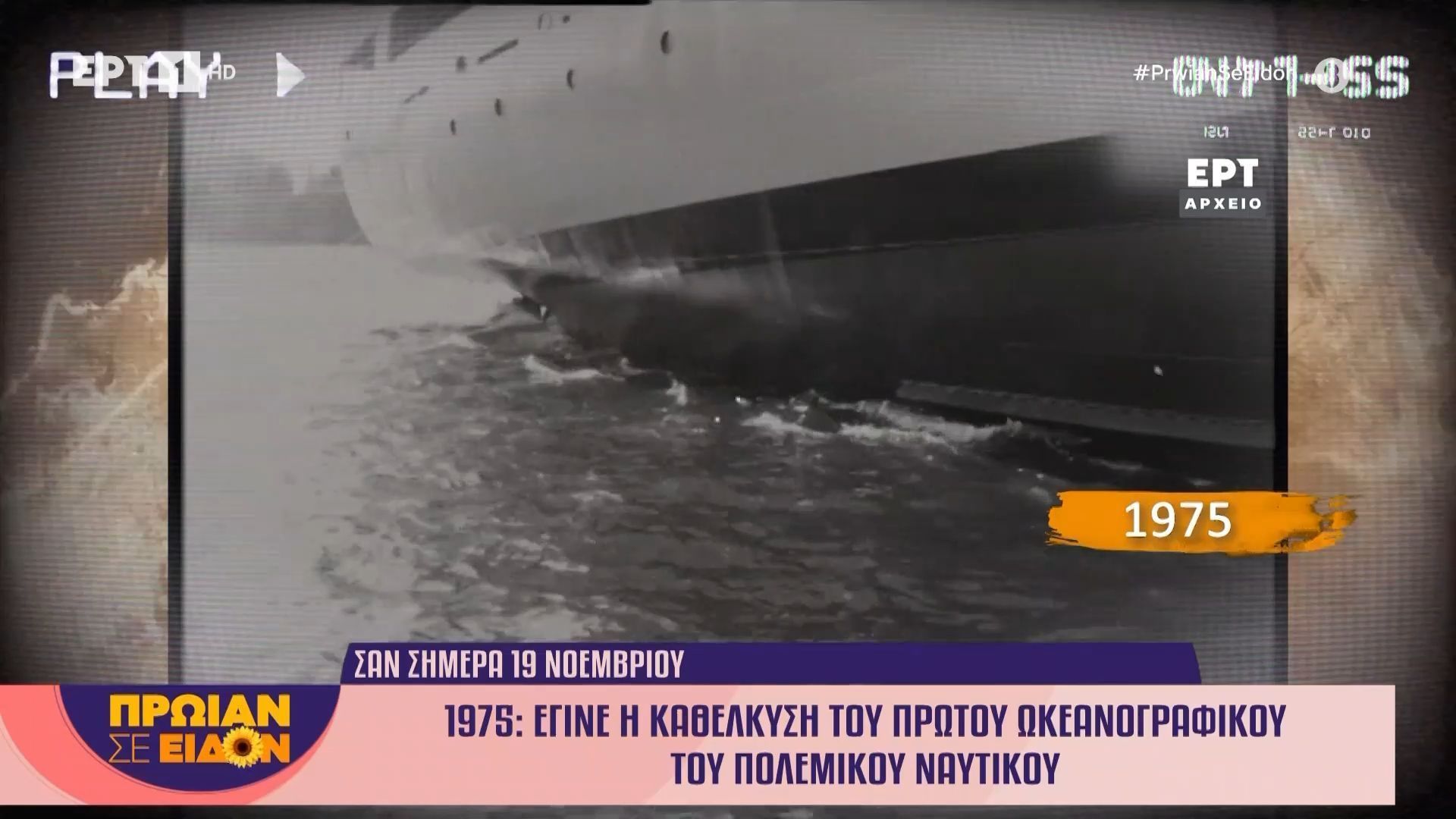 Στις 19 Νοεμβρίου 1975, πραγματοποιήθηκε η καθέλκυση του πρώτου ωκεανογραφικού σκάφους του Πολεμικού Ναυτικού, σημειώνοντας μια σημαντική εξέλιξη στην ναυτική έρευνα της χώρας. Το σκάφος αυτό προοριζόταν για τη μελέτη θαλάσσιων οικοσυστημάτων και την υποστήριξη επιστημονικών αποστολών, ενισχύοντας τη ναυτική τεχνολογία και επιστήμη.