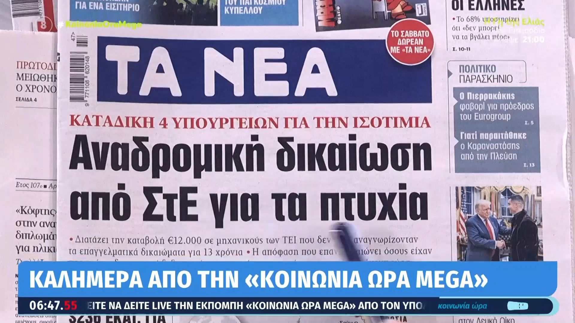 Πρωτοσέλιδα που αναλύουν τις τελευταίες πολιτικές εξελίξεις, οικονομικές προκλήσεις και κοινωνικά ζητήματα που επηρεάζουν την καθημερινότητα