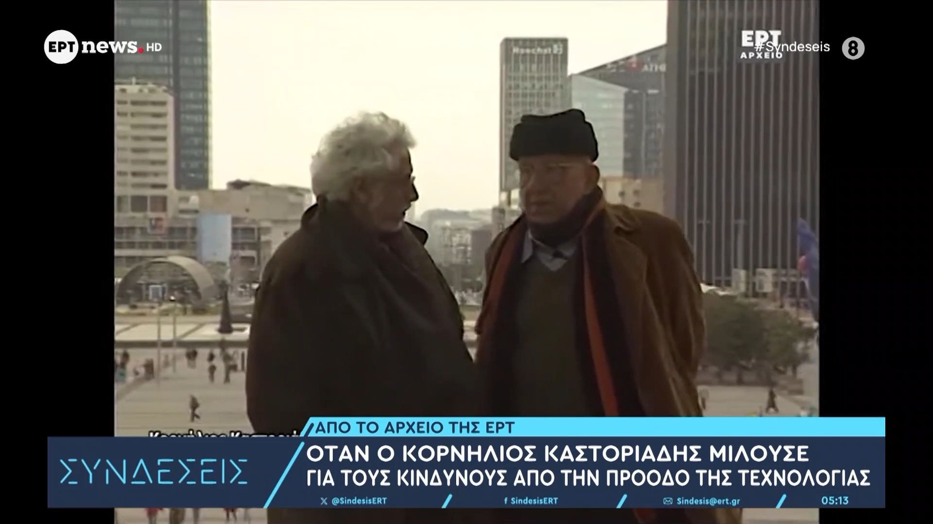 Μια σπάνια συνέντευξη από το Αρχείο της ΕΡΤ αποκαλύπτει τις ανησυχίες του Κορνήλιου Καστοριάδη για τις συνέπειες της τεχνολογικής προόδου. Ο διακεκριμένος φιλόσοφος αναλύει τους κινδύνους που ενδέχεται να προκύψουν από την ανεξέλεγκτη ανάπτυξη της τεχνολογίας και την απομάκρυνση από τις ανθρώπινες αξίες.