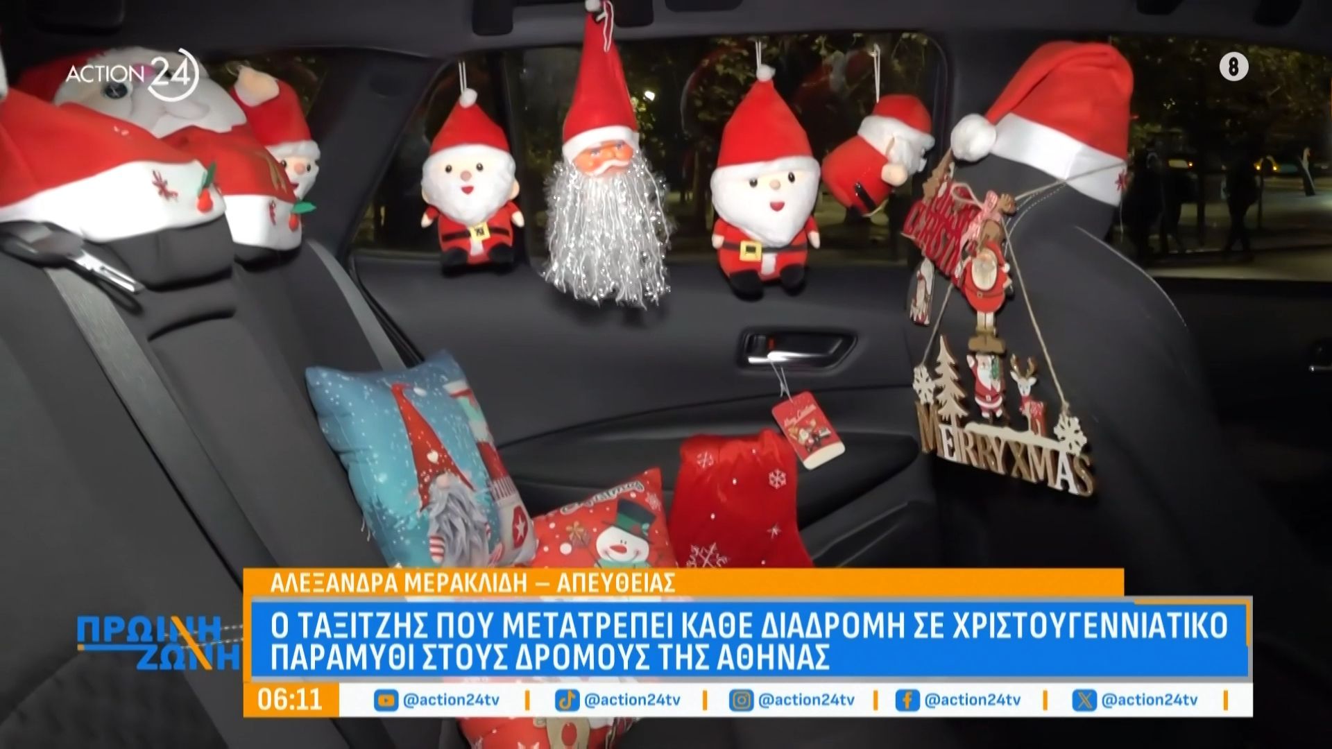 Ένας ταξιτζής έχει καταφέρει να μετατρέψει τις καθημερινές μεταφορές σε μια μαγευτική χριστουγεννιάτικη εμπειρία. Με τη βοήθεια ειδικών διακοσμήσεων και μουσικής, δημιουργεί μια μοναδική ατμόσφαιρα που ενθουσιάζει τους επιβάτες του.