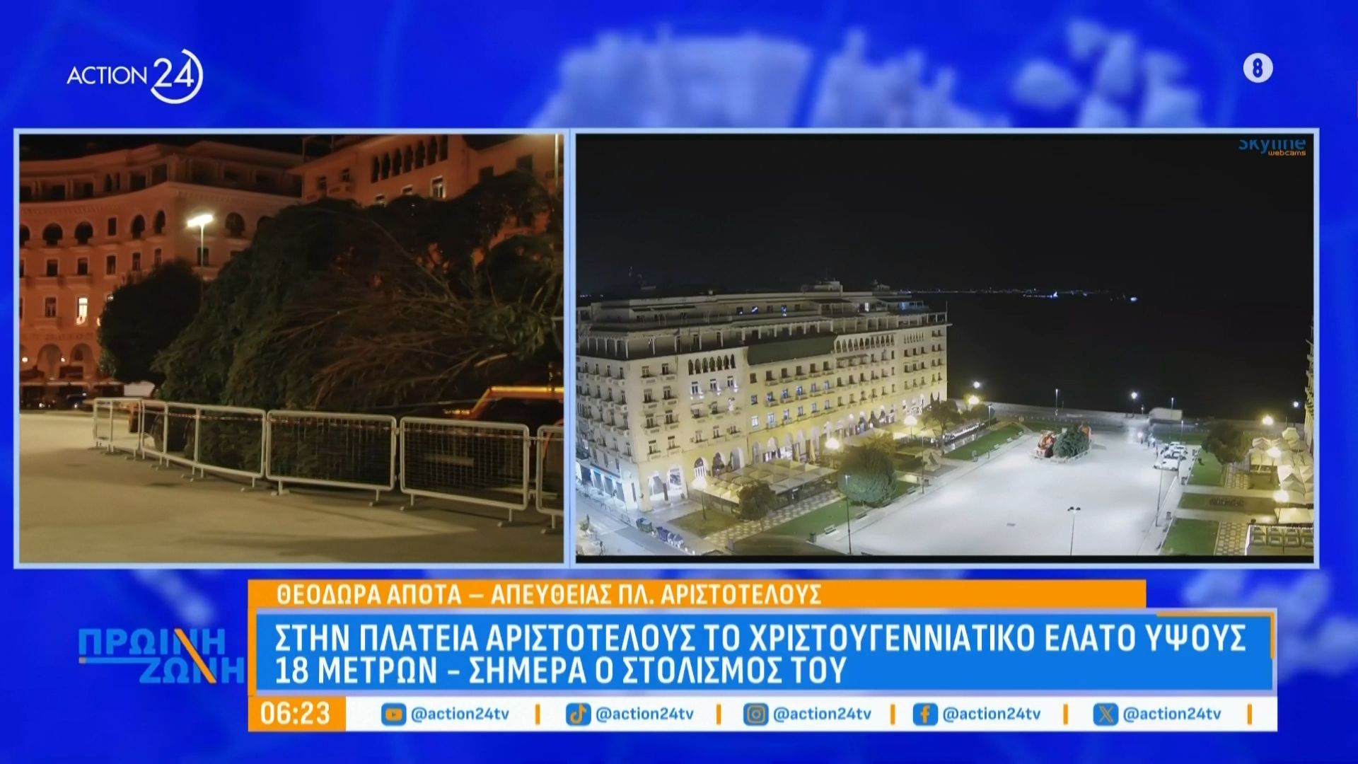 Εντυπωσιακό χριστουγεννιάτικο δέντρο 18 μέτρων στολίζει την κεντρική πλατεία της Θεσσαλονίκης και υποδέχεται τη γιορτινή περίοδο