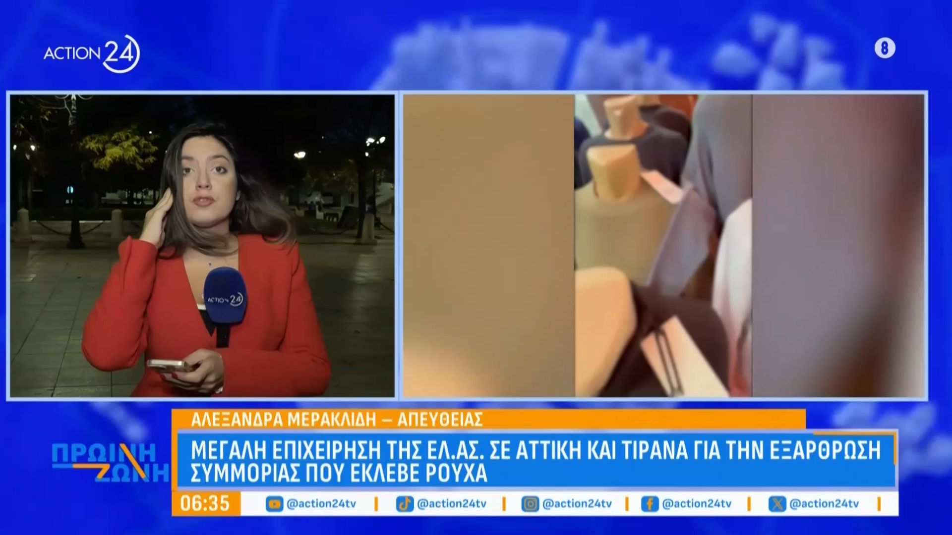Μεγάλη επιχείρηση της Ελληνικής Αστυνομίας πραγματοποιήθηκε σε περιοχές της Αττικής και στα Τίρανα, με στόχο την εξάρθρωση συμμορίας που δραστηριοποιούνταν στην κλοπή ρούχων. Οι αρχές συγκέντρωσαν στοιχεία και πληροφορίες που οδήγησαν σε συντονισμένες επιθέσεις, οι οποίες κατέληξαν στη σύλληψη αρκετών μελών της οργάνωσης.