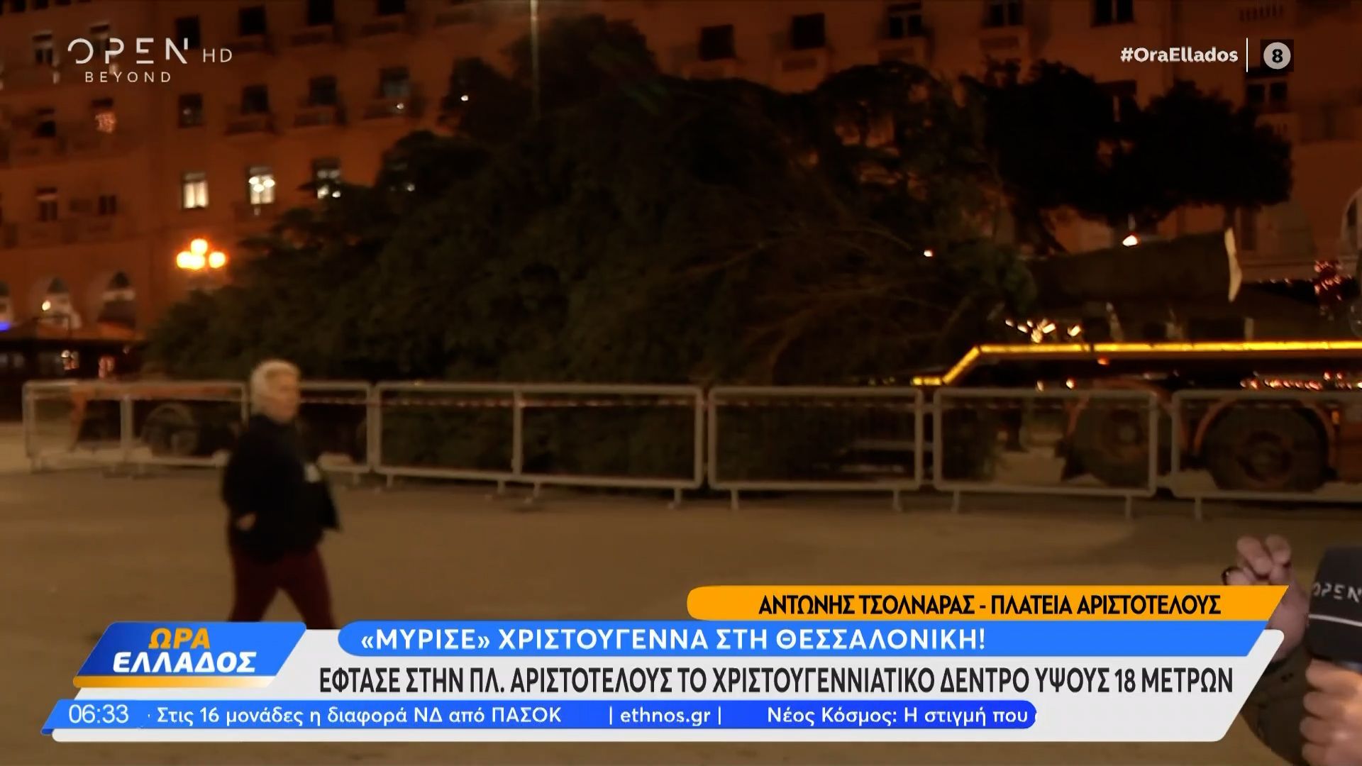 Η Θεσσαλονίκη προετοιμάζεται για τις γιορτές με την τοποθέτηση ενός εντυπωσιακού χριστουγεννιάτικου δέντρου ύψους 18 μέτρων στην κεντρική πλατεία Αριστοτέλους. Οι εργασίες στολισμού έχουν ήδη ξεκινήσει και αναμένονται πλήθος επισκεπτών που θα απολαύσουν τη γιορτινή ατμόσφαιρα.