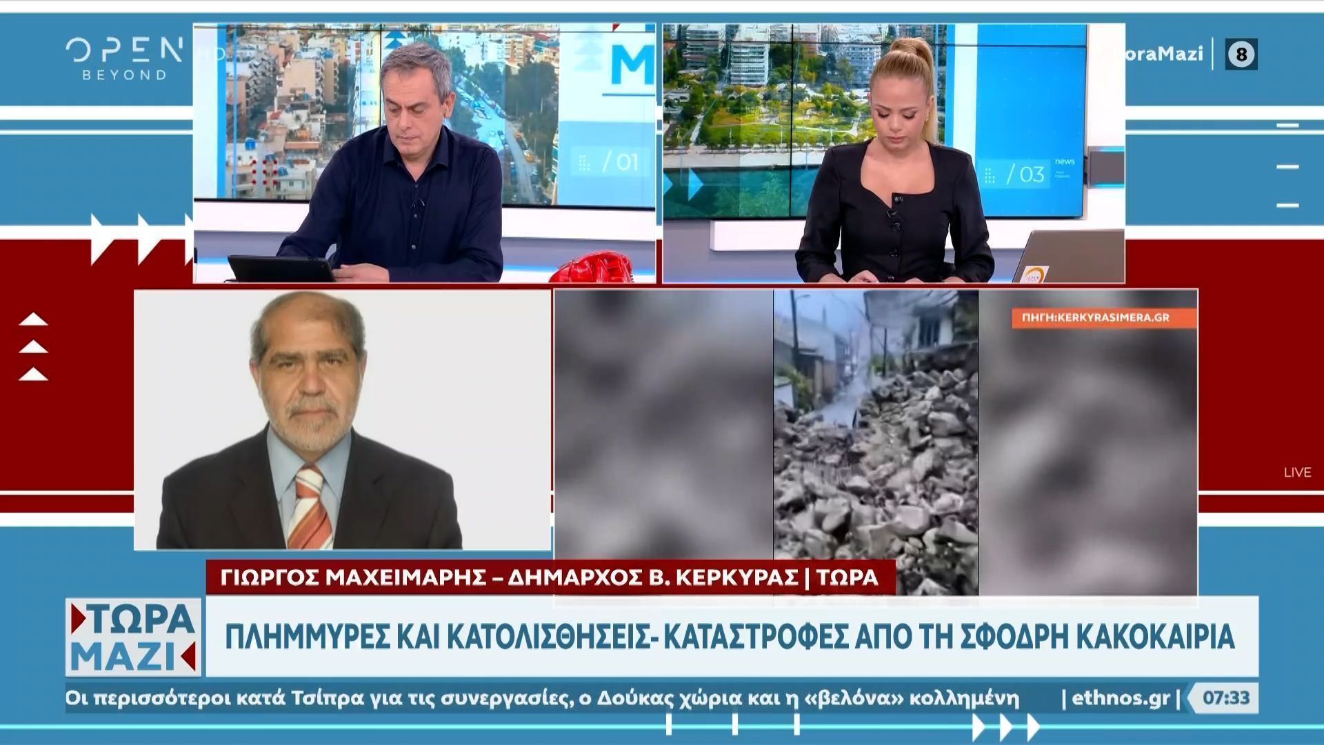 Η Κέρκυρα έχει πληγεί σοβαρά από καταιγίδες που ξεκίνησαν το μεσημέρι της Πέμπτης, με το βόρειο τμήμα του νησιού να αντιμετωπίζει τις μεγαλύτερες ζημιές. Ο Δήμαρχος της Κέρκυρας εκφράζει την ανησυχία του για την κατάσταση και αναφέρει ότι οι υπηρεσίες της πολιτικής προστασίας εργάζονται αδιάκοπα για την αποκατάσταση των ζημιών.