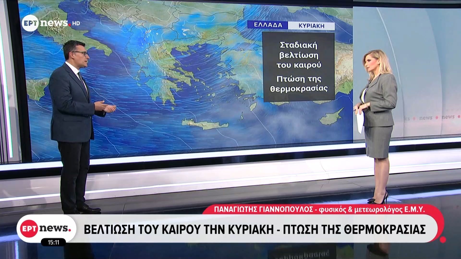 Βελτίωση του καιρού αναμένεται την Κυριακή, με τις βροχοπτώσεις να υποχωρούν και τον ήλιο να κάνει την εμφάνισή του σε πολλές περιοχές της χώρας. Ωστόσο, οι θερμοκρασίες θα σημειώσουν πτώση, ιδιαίτερα στα βόρεια και ορεινά τμήματα, όπου οι νύχτες θα είναι πιο δροσερές.
