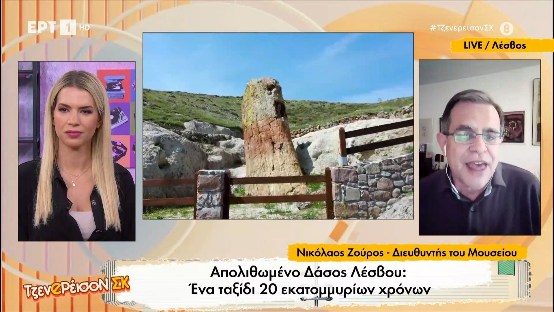 Ο Διευθυντής του μουσείου, Νικόλαος Ζούρος, αναλύει τη σημασία του απολιθωμένου δάσους που βρίσκεται στη Λέσβο και την ιστορική του αξία. Μέσα από την παρουσίαση, οι θεατές έχουν την ευκαιρία να κατανοήσουν πώς αυτά τα απολιθώματα προσφέρουν πολύτιμες πληροφορίες για το οικοσύστημα και το κλίμα που επικρατούσε στην περιοχή πριν από 20 εκατομμύρια χρόνια.