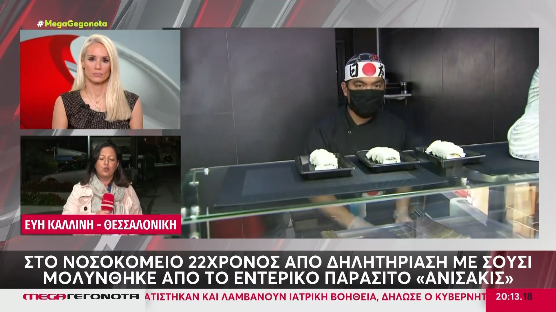 Ένας 22χρονος άνδρας από τη Θεσσαλονίκη νοσηλεύεται σε σταθερή κατάσταση μετά από σοβαρή δηλητηρίαση που προήλθε από την κατανάλωση σούσι. Ο νεαρός υποβλήθηκε σε επείγουσα χειρουργική επέμβαση, ωστόσο η υγεία του έχει σταθεροποιηθεί και δεν διατρέχει κίνδυνο.