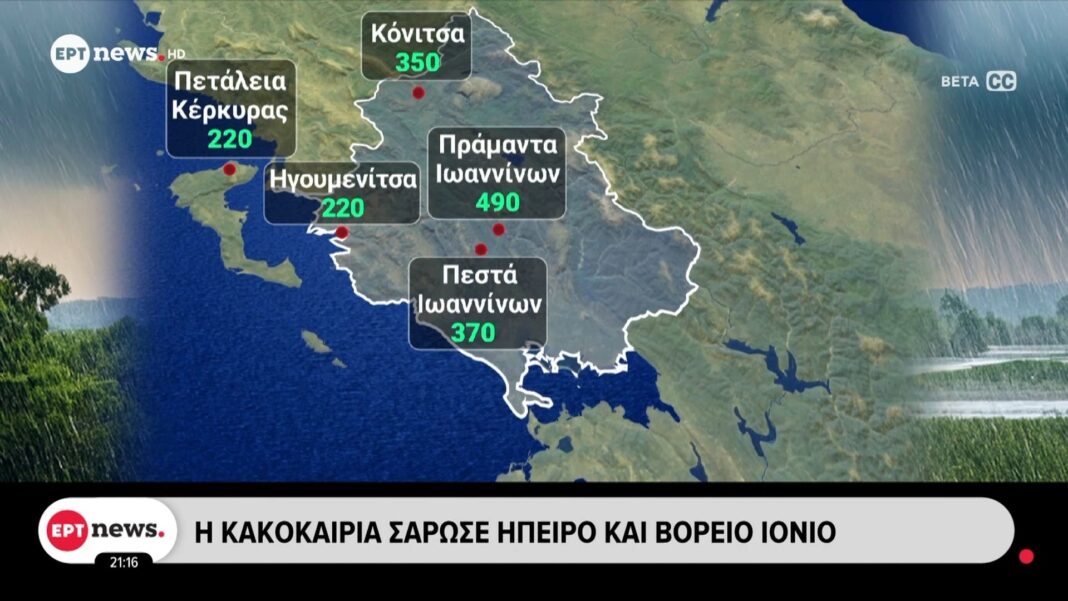 Ισχυρή κακοκαιρία πλήττει την Ήπειρο και το Βόρειο Ιόνιο με έντονα καιρικά φαινόμενα και σημαντικές καταστροφές