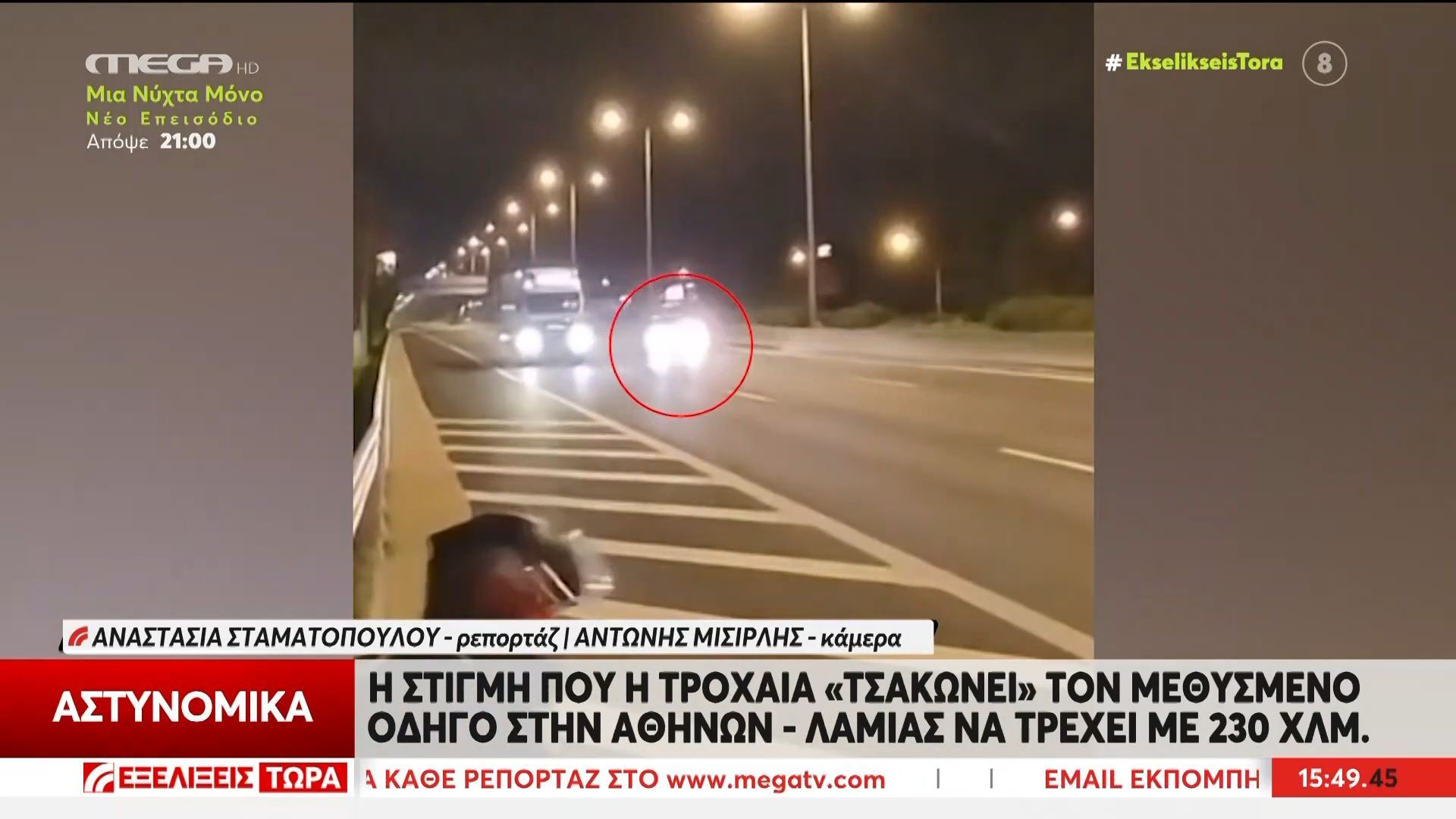 Σοκαριστικές εικόνες καταγράφουν τη στιγμή που αστυνομικοί της τροχαίας εντοπίζουν έναν οδηγό να κινείται με 230 χλμ/ώρα στην Αθηνών – Λαμίας. Ο άνδρας, ο οποίος φέρεται να είναι μεθυσμένος, θέτει σε κίνδυνο τη ζωή του και άλλων οδηγών, προκαλώντας ανησυχία στους ανακριτές.