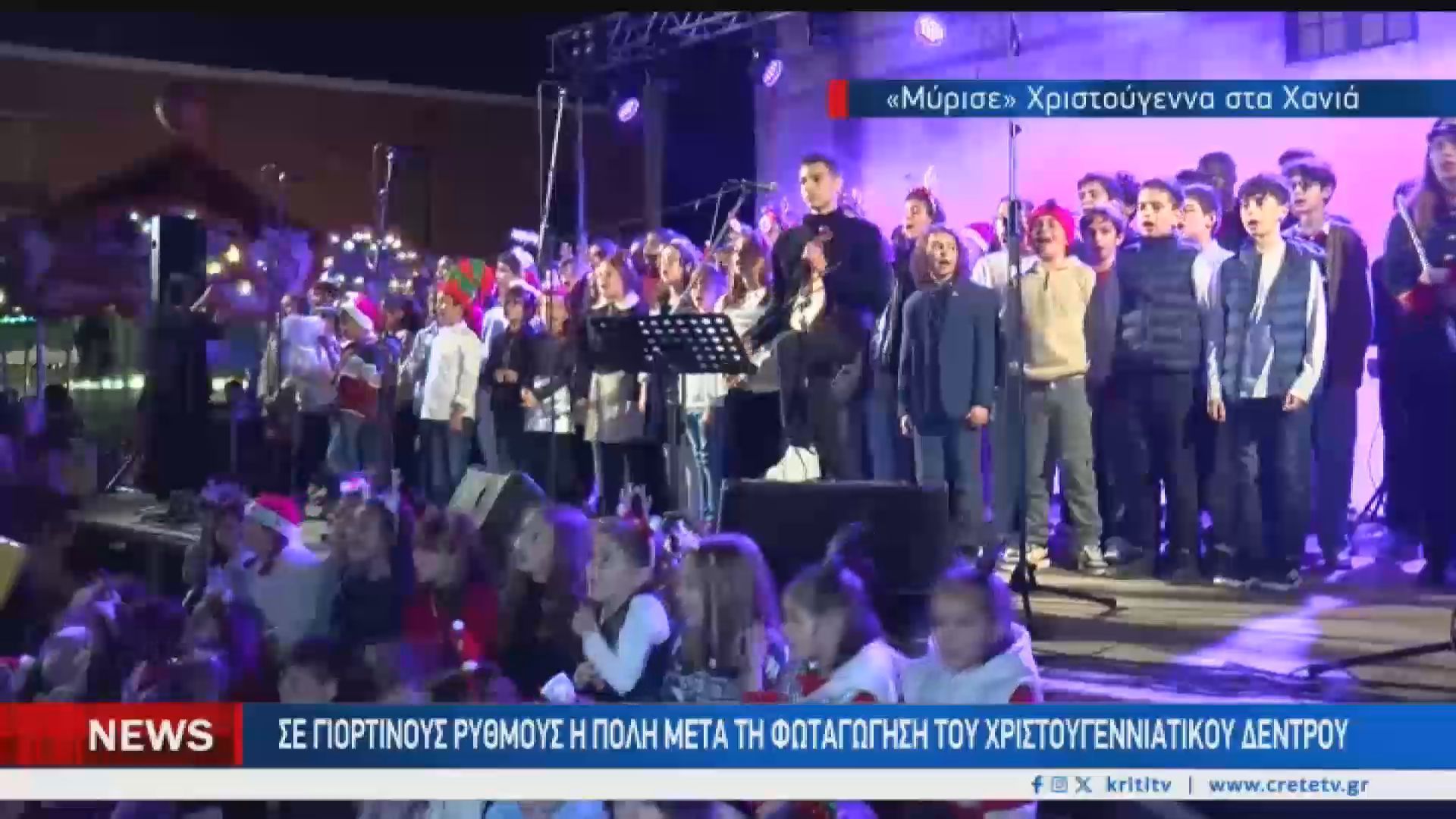 Χριστουγεννιάτικη γιορτή στα Χανιά με παραδοσιακά κάλαντα και εντυπωσιακά πυροτεχνήματα που άναψαν τον εορταστικό κλοιό