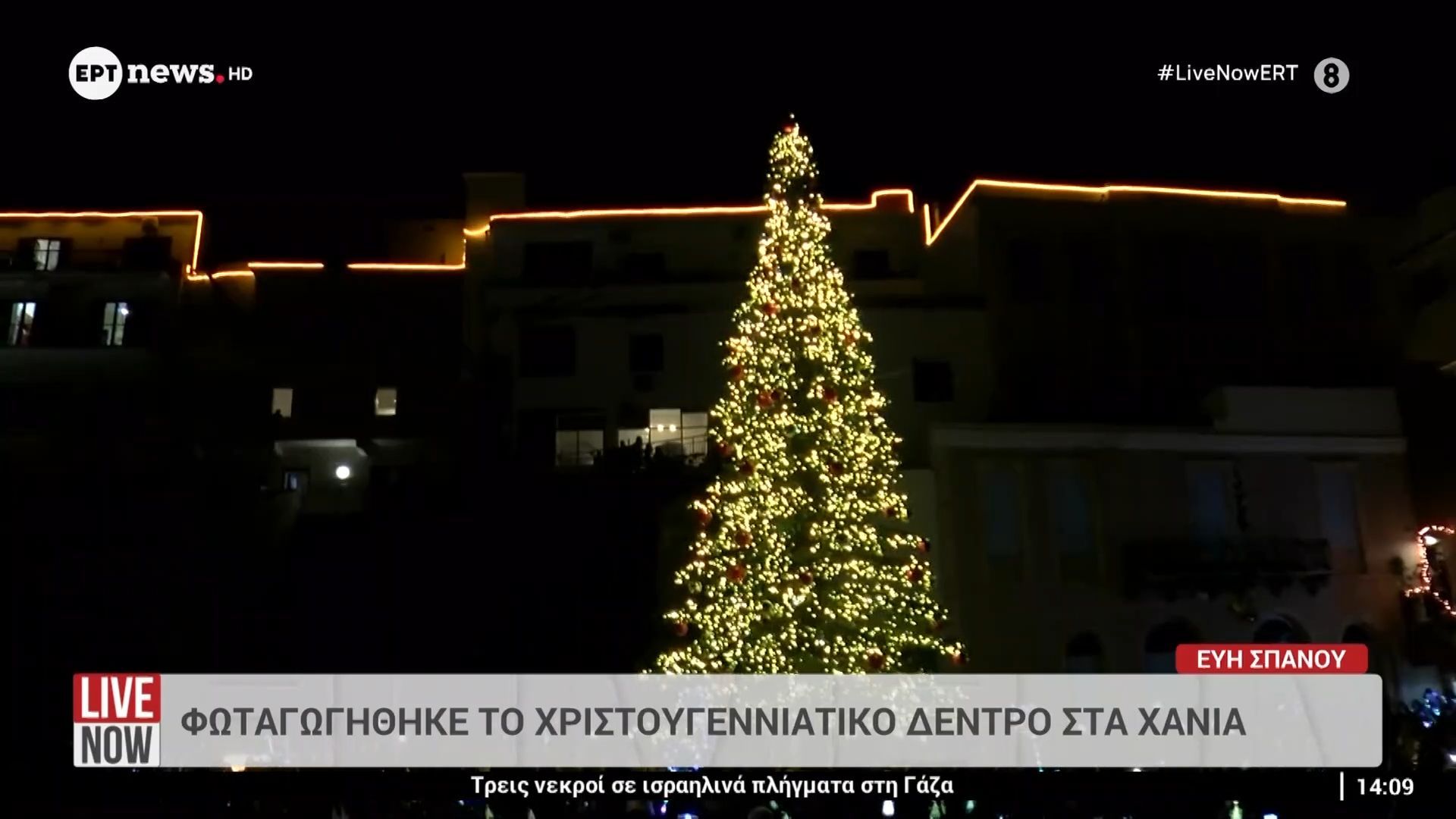 Η φωταγώγηση του χριστουγεννιάτικου δέντρου στα Χανιά σηματοδότησε την έναρξη των εορταστικών εκδηλώσεων στην πόλη. Πλήθος κόσμου συγκεντρώθηκε στην πλατεία για να παρακολουθήσει τη γιορτινή ατμόσφαιρα και να απολαύσει τις μουσικές παρουσίες που συνόδευσαν την εκδήλωση.