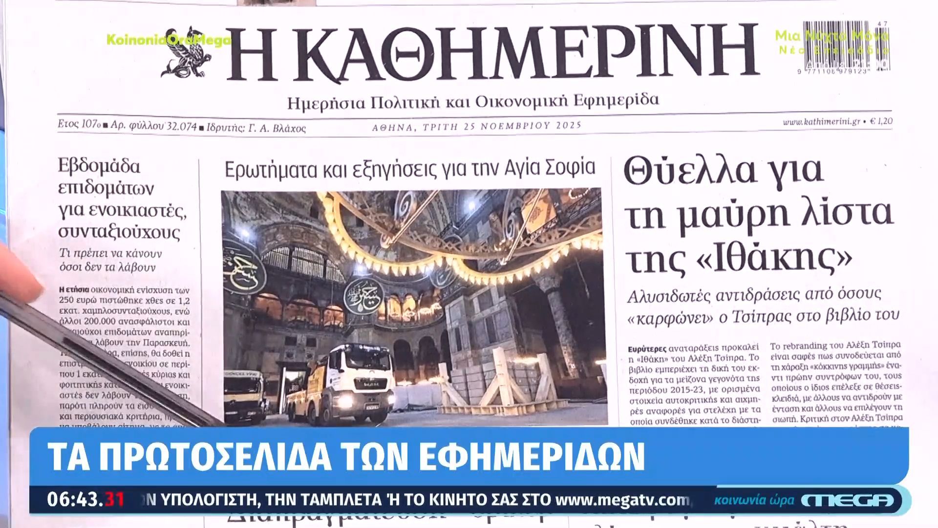 Πρωτοσέλιδα εφημερίδων: Τι γράφουν σήμερα Τρίτη 25 Νοεμβρίου 2025