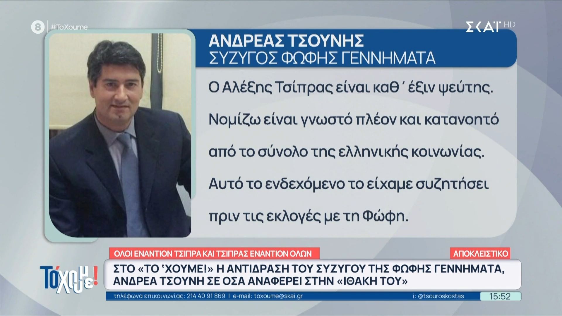 Ο Βασίλης Μπισμπίκης, σε συνέντευξή του στην εκπομπή Στούντιο...