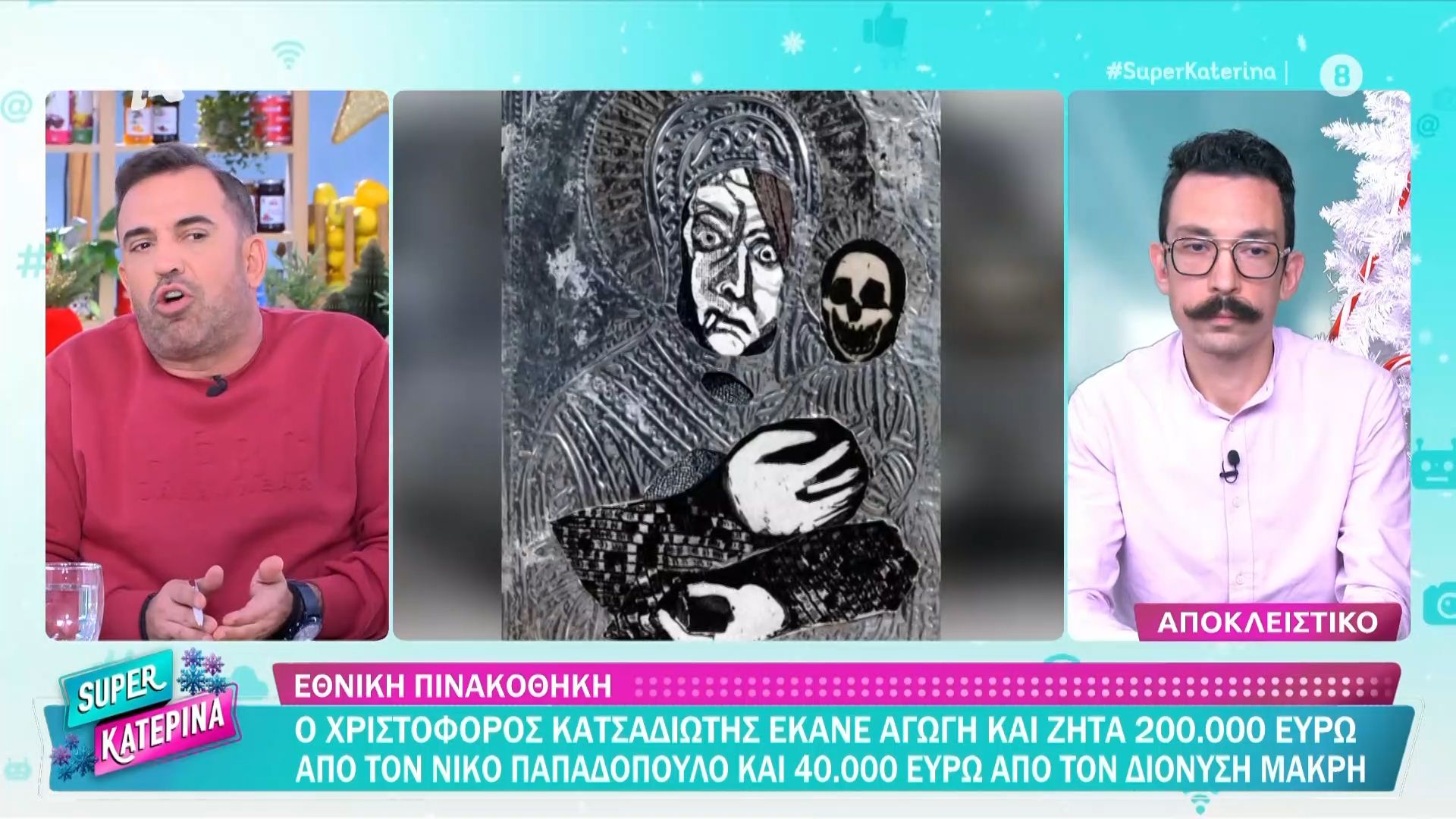 Ο καλλιτέχνης Χρήστος Κατσαδιώτης προσέφυγε στη δικαιοσύνη, ζητώντας αποζημίωση χιλιάδων ευρώ από τους Νίκο Παπαδόπουλο και Διονύση Μακρή. Η αγωγή αφορά τον βανδαλισμό έργων του στην Εθνική Πινακοθήκη, γεγονός που έχει προκαλέσει έντονες αντιδράσεις στη καλλιτεχνική κοινότητα.