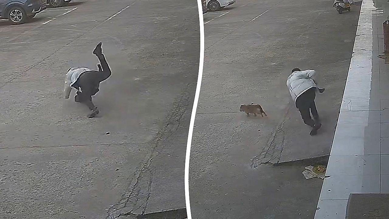 Άνδρας προσπαθεί να τρομάξει σκυλάκι και καταλήγει στο έδαφος, αποδεικνύοντας πως η κακή πρόθεση συχνά τιμωρείται άμεσα