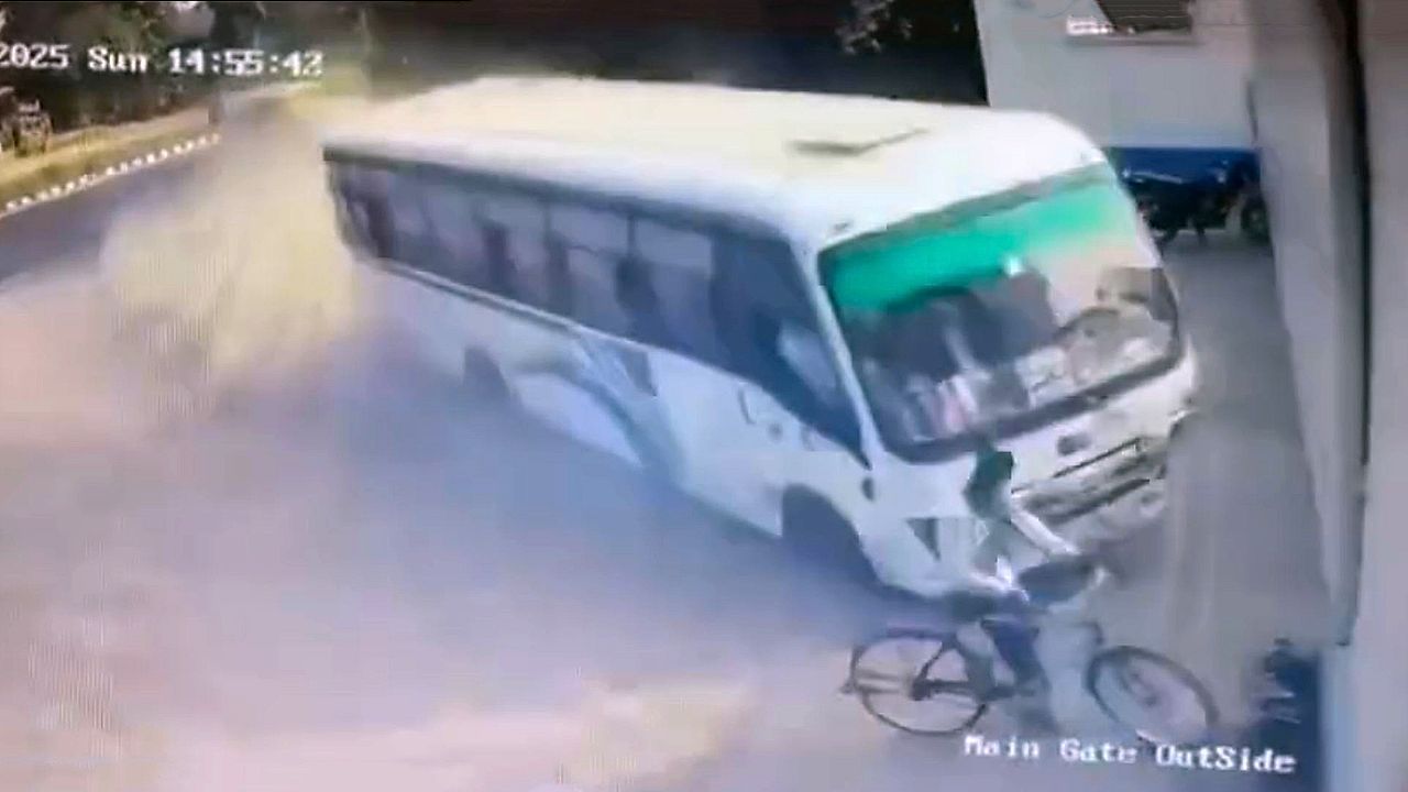 Σοκαριστικές σκηνές εκτυλίχθηκαν σε πολυσύχναστο δρόμο όταν ένα λεωφορείο, χάνοντας τον έλεγχο, έσπασε μια πύλη και χτύπησε πεζό. Ο ποδηλάτης που βρισκόταν κοντά κατάφερε να αποφύγει την πρόσκρουση την τελευταία στιγμή, γλιτώνοντας από θαύμα.