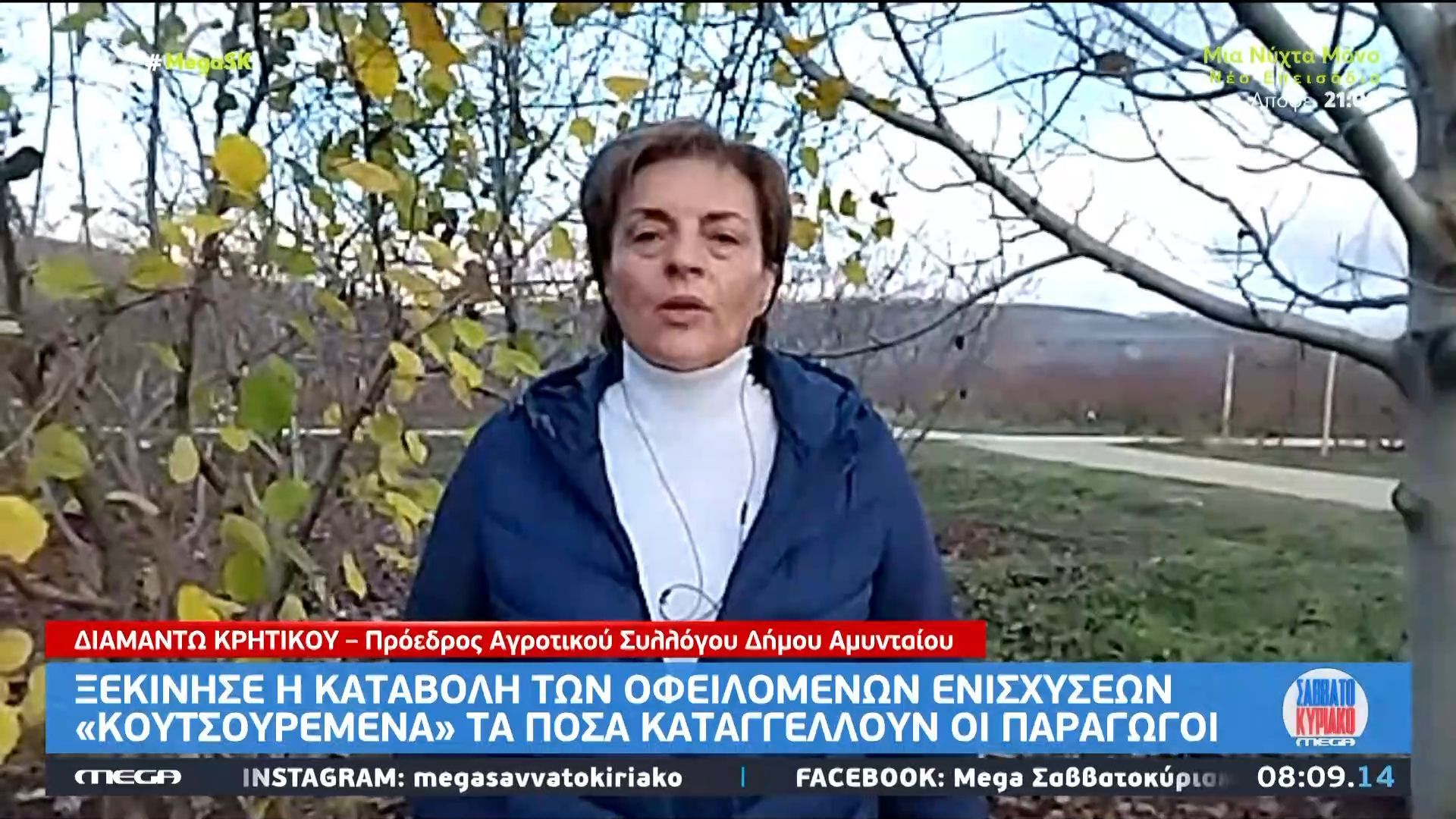 Η πρόεδρος του Αγροτικού Συλλόγου Δήμου Αμυνταίου, Διαμαντώ Κρητικού, εκφράζει την ανησυχία της σχετικά με τις πληρωμές του ΟΠΕΚΕΠΕ. Τονίζει ότι οι αγρότες ζητούν διαφάνεια και πληροφορίες σχετικά με το πού κατευθύνονται οι επιδοτήσεις, επισημαίνοντας την ανάγκη για καλύτερη επικοινωνία από τις αρχές.