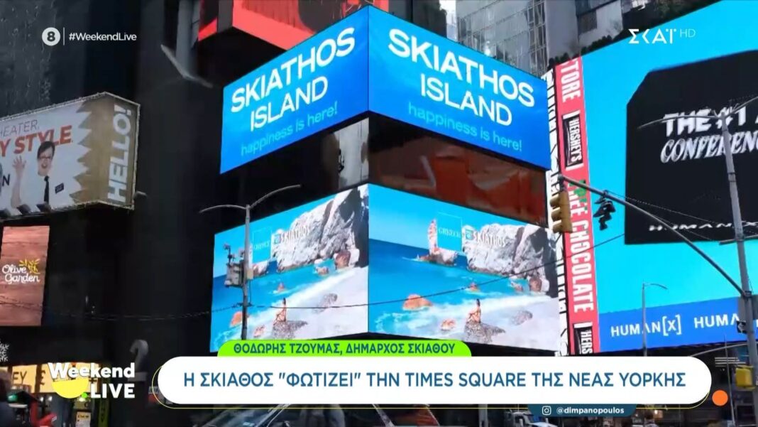 Ο δήμαρχος Σκιάθου συμμετείχε σε ζωντανή εκπομπή, όπου παρουσίασε τις μοναδικές ομορφιές του νησιού και τις προοπτικές του τουρισμού. Σημαντική ήταν η αναφορά του στη συνεργασία με τον Δήμο της Νέας Υόρκης, που έχει στόχο την προώθηση της Σκιάθου ως δημοφιλούς προορισμού.