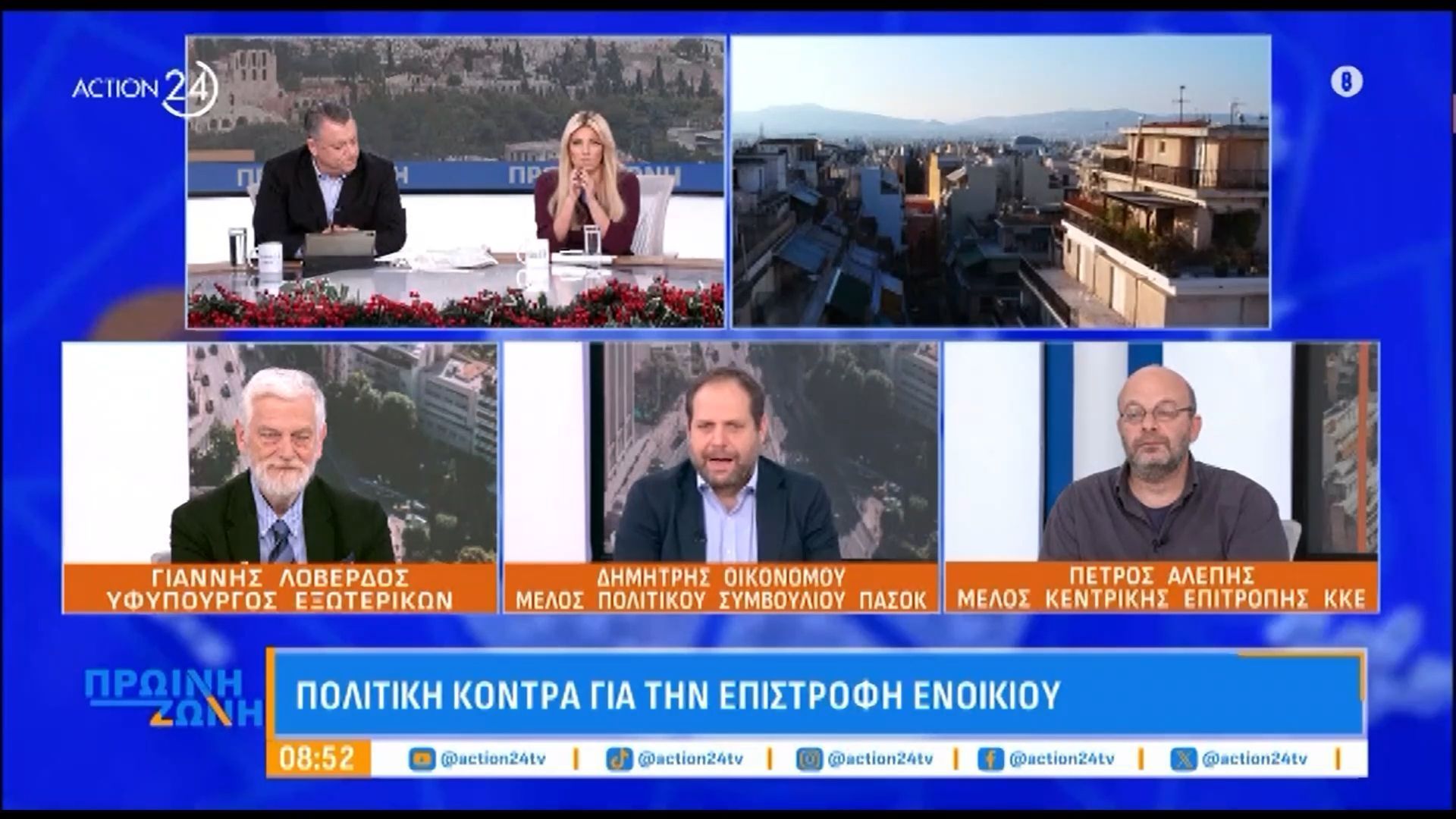Ο Δημήτρης Οικονόμου και άλλα μέλη πολιτικών κομμάτων συζητούν τα προβλήματα που προκύπτουν από τη διαδικασία επιστροφής ενοικίου, αναδεικνύοντας τις αδυναμίες της κυβερνητικής πολιτικής. Ο Οικονόμου επισημαίνει ότι οι κυβερνητικές αποφάσεις συχνά αγνοούν τις ανάγκες των πλατιών κοινωνικών μάζων, αντιμετωπίζοντας τα ζητήματα ως δευτερεύοντα.