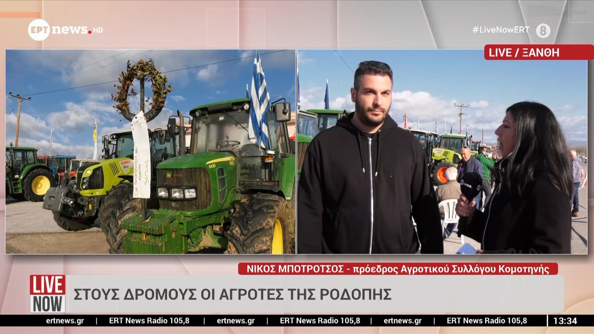 Αγρότες της Ροδόπης διαμαρτύρονται με τρακτέρ στην περιφερειακή οδό, ζητώντας λύσεις για τα προβλήματα του αγροτικού τομέα και στήριξη