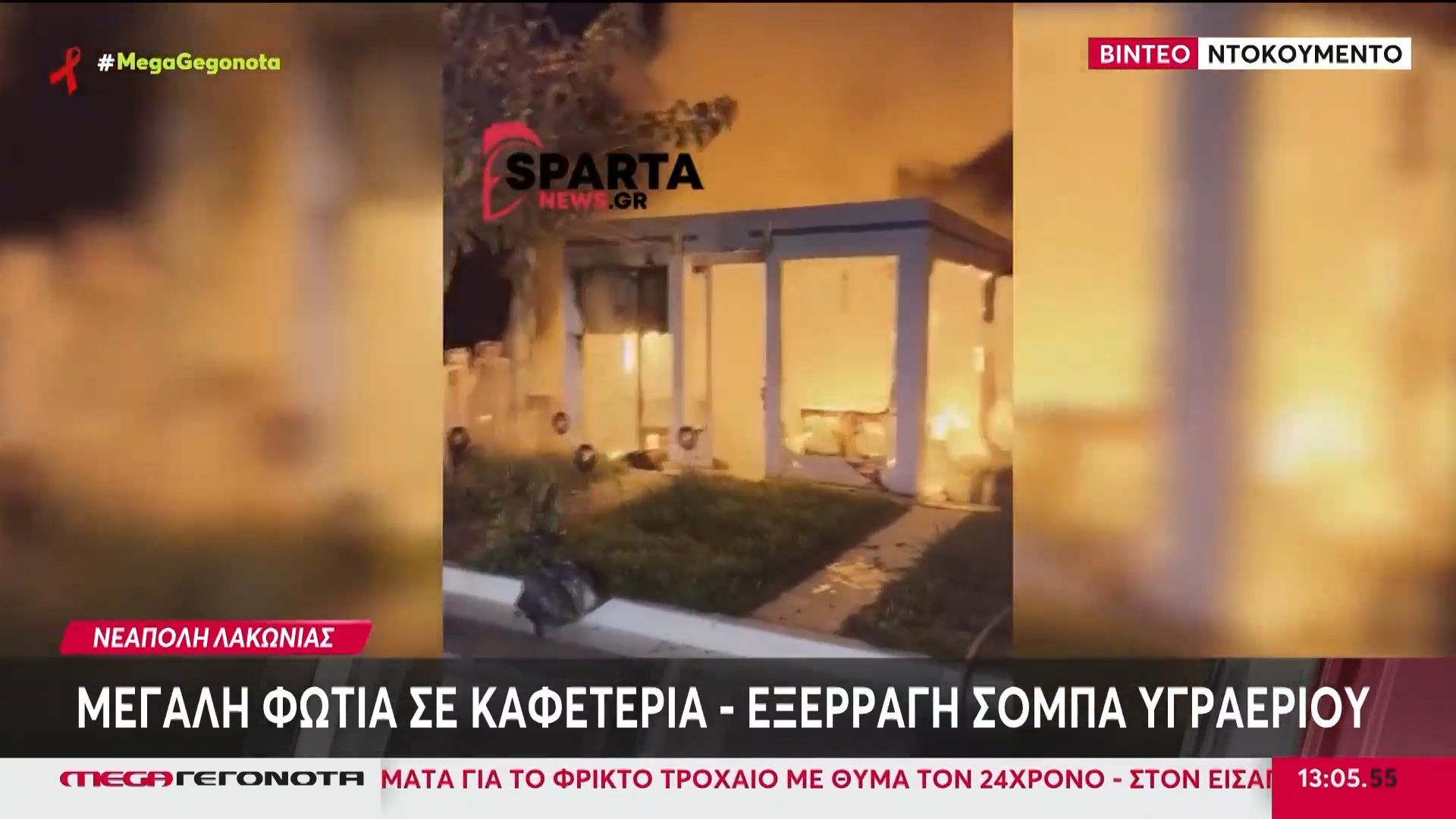 Έκρηξη σόμπας υγραερίου προκάλεσε μεγάλη φωτιά σε καφετέρια στη Νεάπολη Λακωνίας, με τους θαμώνες να απομακρύνονται έγκαιρα και την Πυροσβεστική να επεμβαίνει άμεσα