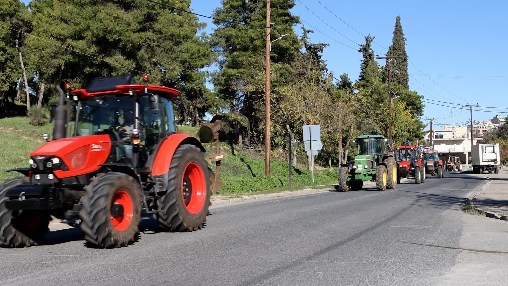 Αγρότες στη Θήβα διαμαρτύρονται με τρακτέρ για τις χαμηλές προκαταβολές, απαιτώντας δίκαιες αποζημιώσεις και στήριξη του αγροτικού εισοδήματος