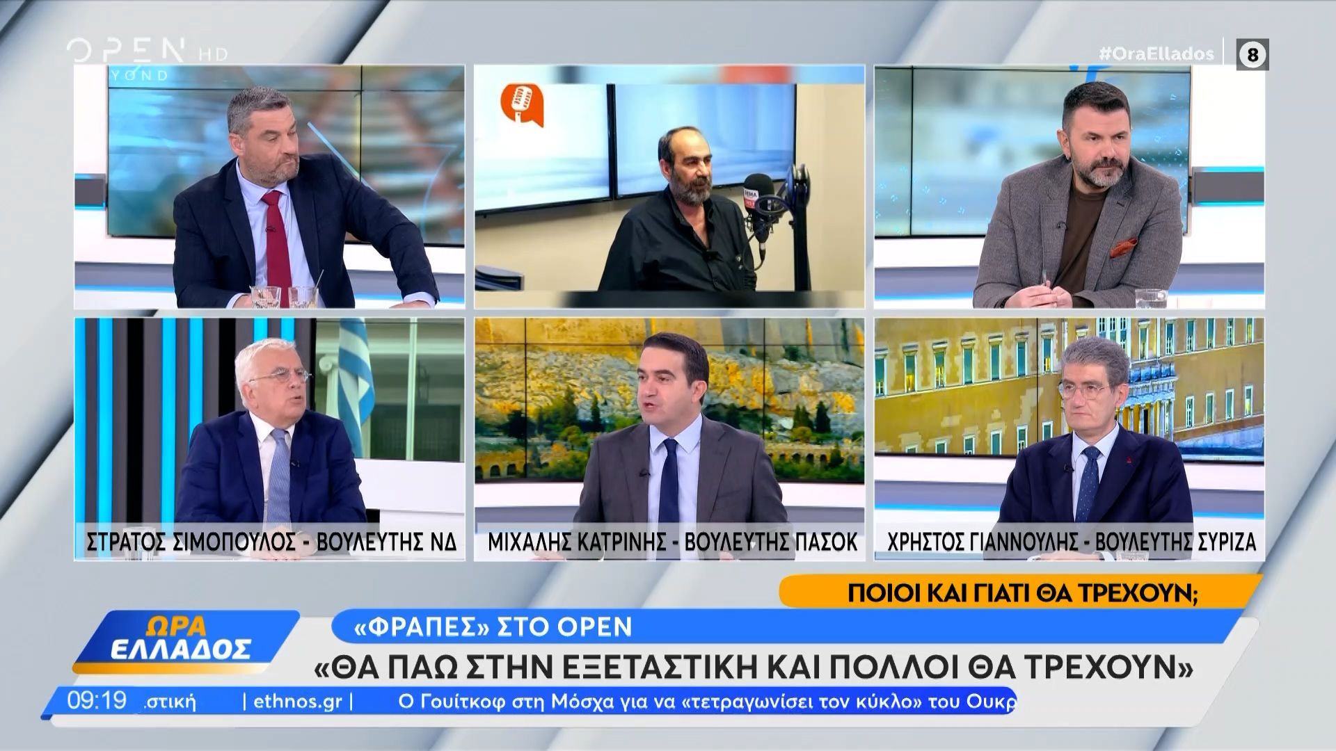 Στην εκπομπή συμμετείχαν εκπρόσωποι τριών κομμάτων, όπου συζητήθηκαν οι πρόσφατες κινητοποιήσεις των αγροτών σε κρίσιμες οδικές αρτηρίες της χώρας. Οι Στράτος Σιμόπουλος, Μιχάλης Κατρίνης και Χρήστος Γιαννούλης αντάλλαξαν απόψεις για τις αιτίες των διαμαρτυριών και τις πολιτικές προτάσεις που προωθούν οι respective παρατάξεις τους.