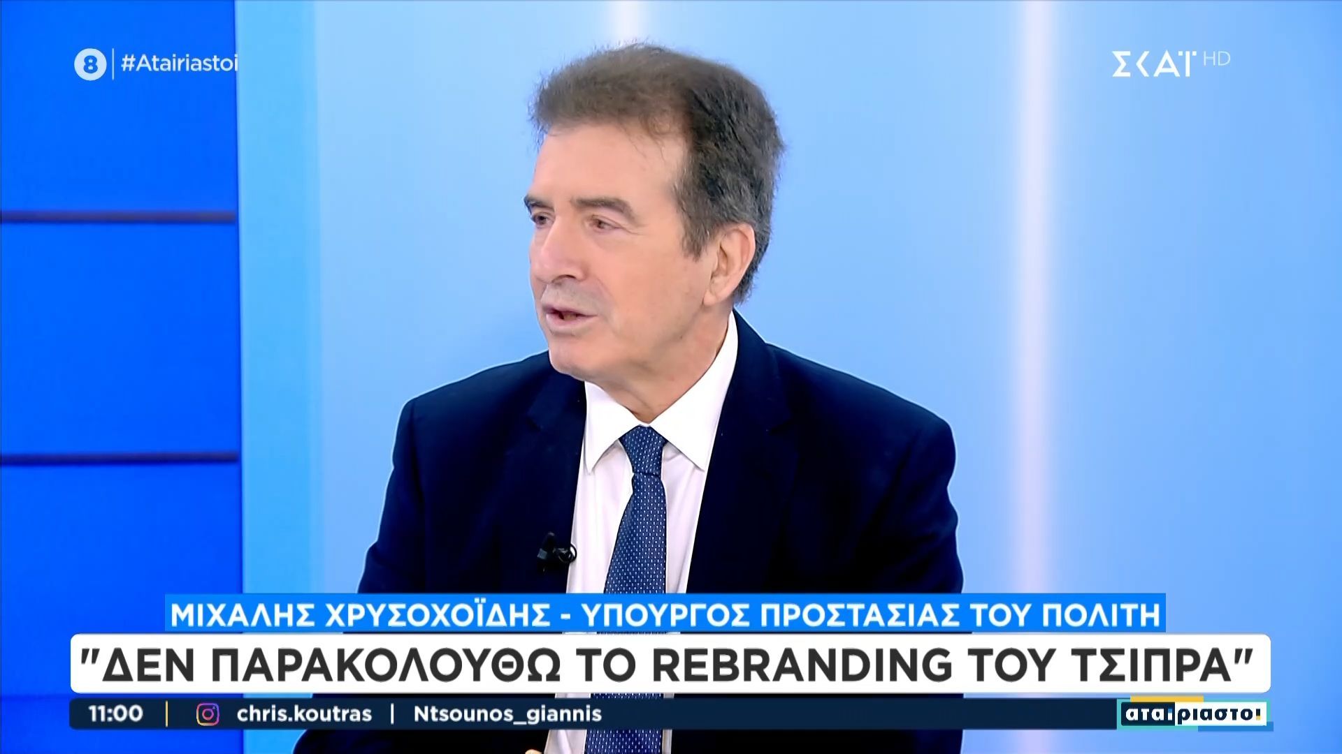 Ο Υπουργός Προστασίας του Πολίτη, Μιχάλης Χρυσοχοΐδης, εκφράζει την άποψή του για τις πρόσφατες πολιτικές κινήσεις του Αλέξη Τσίπρα, συγκρίνοντάς τον με τις απόψεις του πρώην Πρωθυπουργού Κώστα Σημίτη πριν αναλάβει την εξουσία. Ο Χρυσοχοΐδης τονίζει ότι οι θέσεις του Τσίπρα ενδέχεται να αποδειχθούν ανατρεπτικές, προσδιορίζοντας τις πολιτικές του προθέσεις.