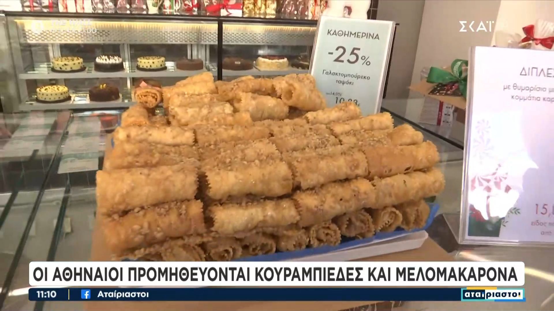 Οι φούρνοι και τα ζαχαροπλαστεία της Αθήνας βρίσκονται σε πλήρη δραστηριότητα καθώς πλησιάζουν τα Χριστούγεννα. Οι Αθηναίοι προμηθεύονται παραδοσιακούς κουραμπιέδες και μελομακάρονα, δημιουργώντας μια ατμόσφαιρα εορταστικής χαράς και γιορτής.