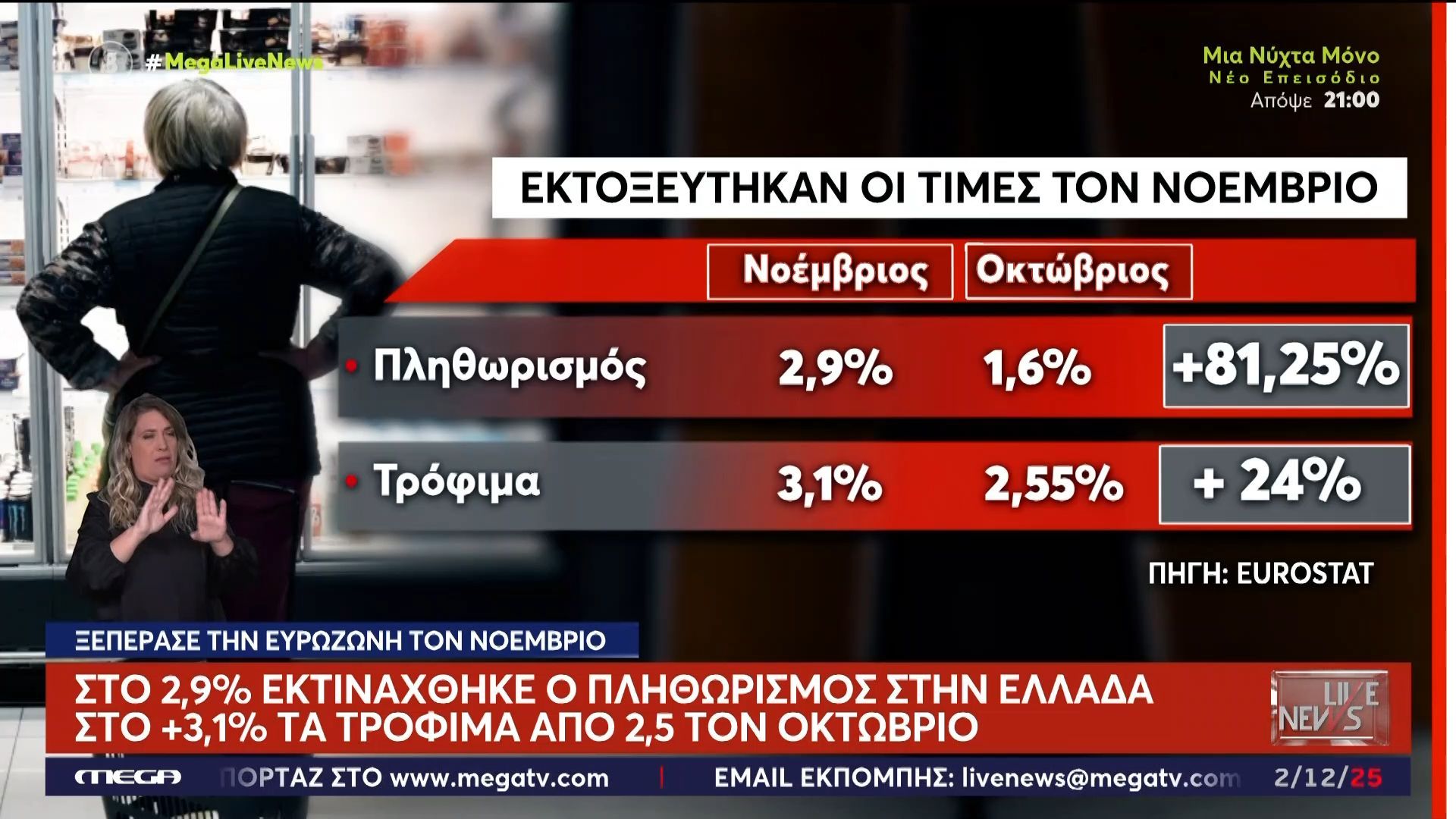 Ο πληθωρισμός στην Ελλάδα σημείωσε σημαντική αύξηση, φτάνοντας το 2,9% τον τελευταίο μήνα, γεγονός που εντείνει τις ανησυχίες για την οικονομική κατάσταση της χώρας. Οι καταναλωτές βιώνουν καθημερινά τις συνέπειες της ακρίβειας, με τις τιμές βασικών αγαθών να συνεχίζουν να αυξάνονται.