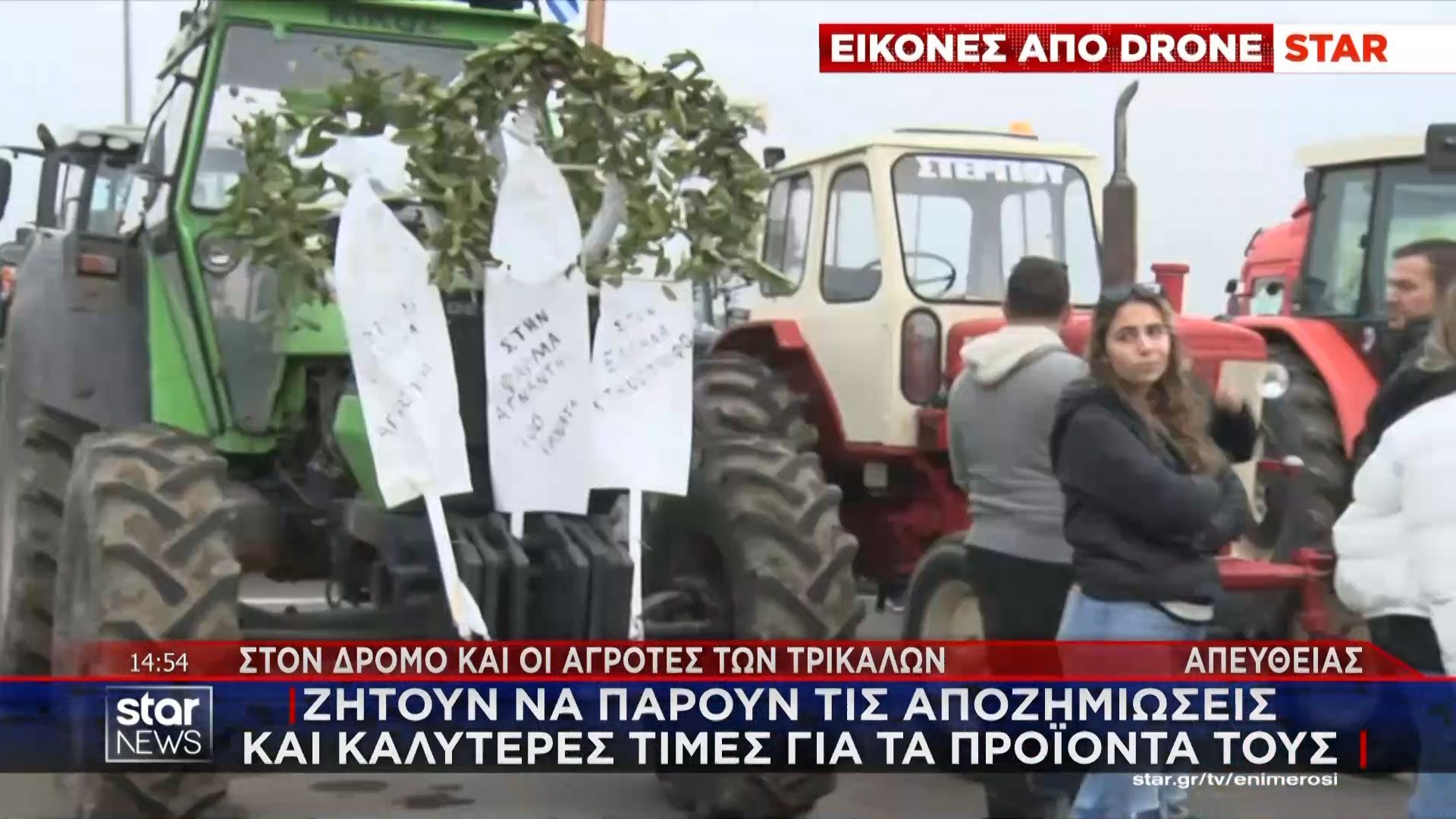 Στα Τρίκαλα, οι αγρότες κρέμασαν στεφάνια στα τρακτέρ τους ως ένδειξη διαμαρτυρίας για τα προβλήματα που αντιμετωπίζουν στον τομέα της γεωργίας και της κτηνοτροφίας. Η κινητοποίηση αυτή έρχεται σε μια περίοδο αυξανόμενης ανησυχίας για τις τιμές των προϊόντων και τις επιδοτήσεις, που επηρεάζουν σοβαρά την επιβίωσή τους.