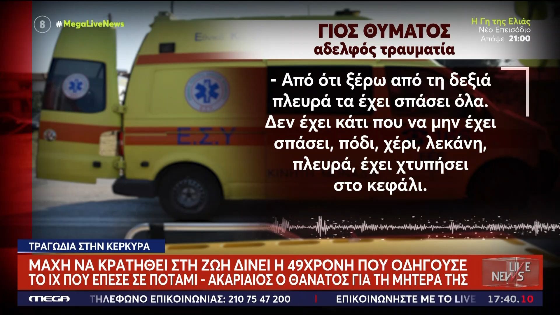 Μάχη για την επιβίωση δίνει η 49χρονη οδηγός του ΙΧ, το οποίο έπεσε σε ποτάμι στην Κέρκυρα. Η γυναίκα, που νοσηλεύεται σε κρίσιμη κατάσταση, υπέστη σοβαρά τραύματα κατά την πτώση του οχήματος.